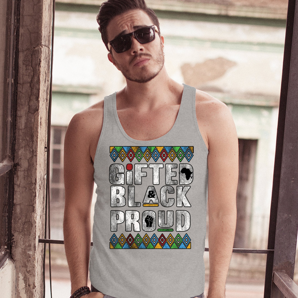 GIFTED BLACK & PROUD tank top african american black lives matter men's top gray