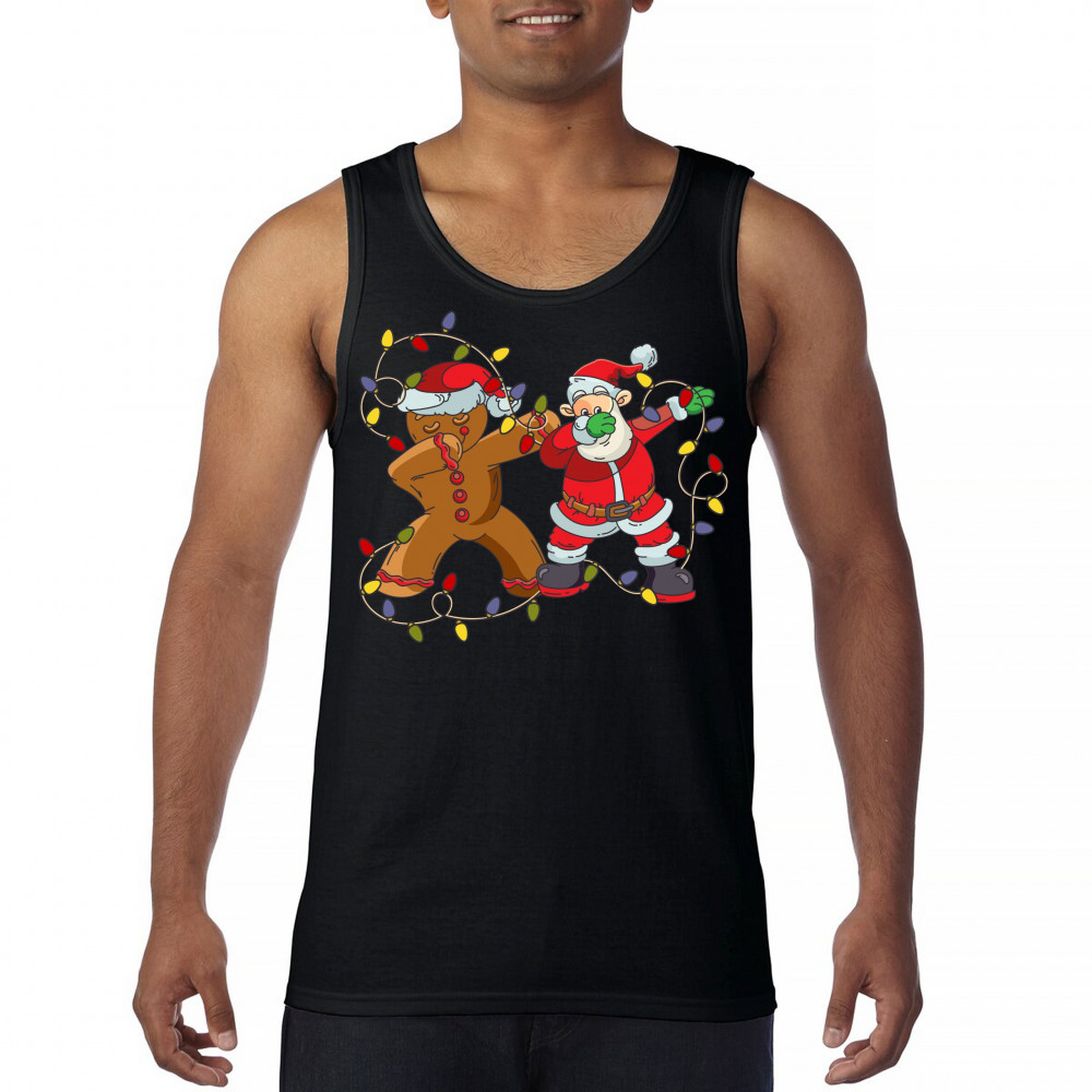 GINGERBREAD MAN AND SANTA CLAUS DAB DANCE tank top merry christmas men's top black