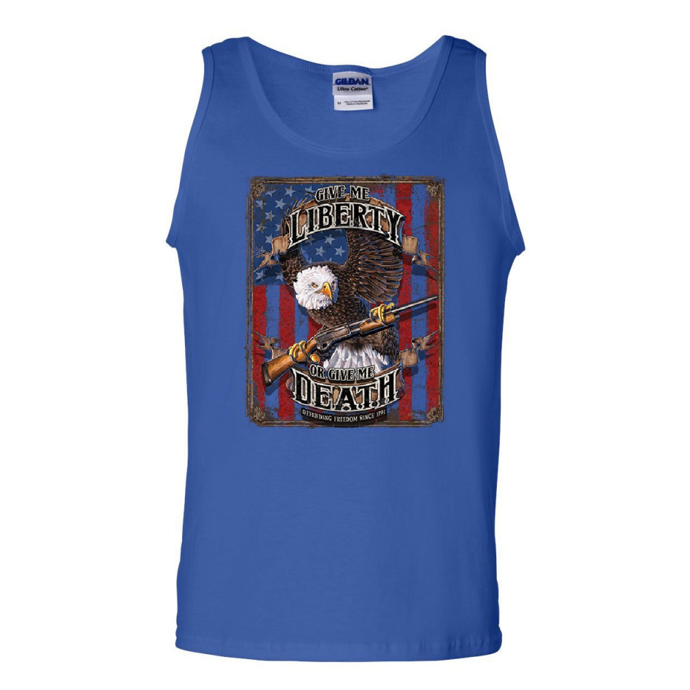 GIVE ME LIBERTY OR GIVE ME DEATH tank top eagle defend freedom 2a sleeveless blue