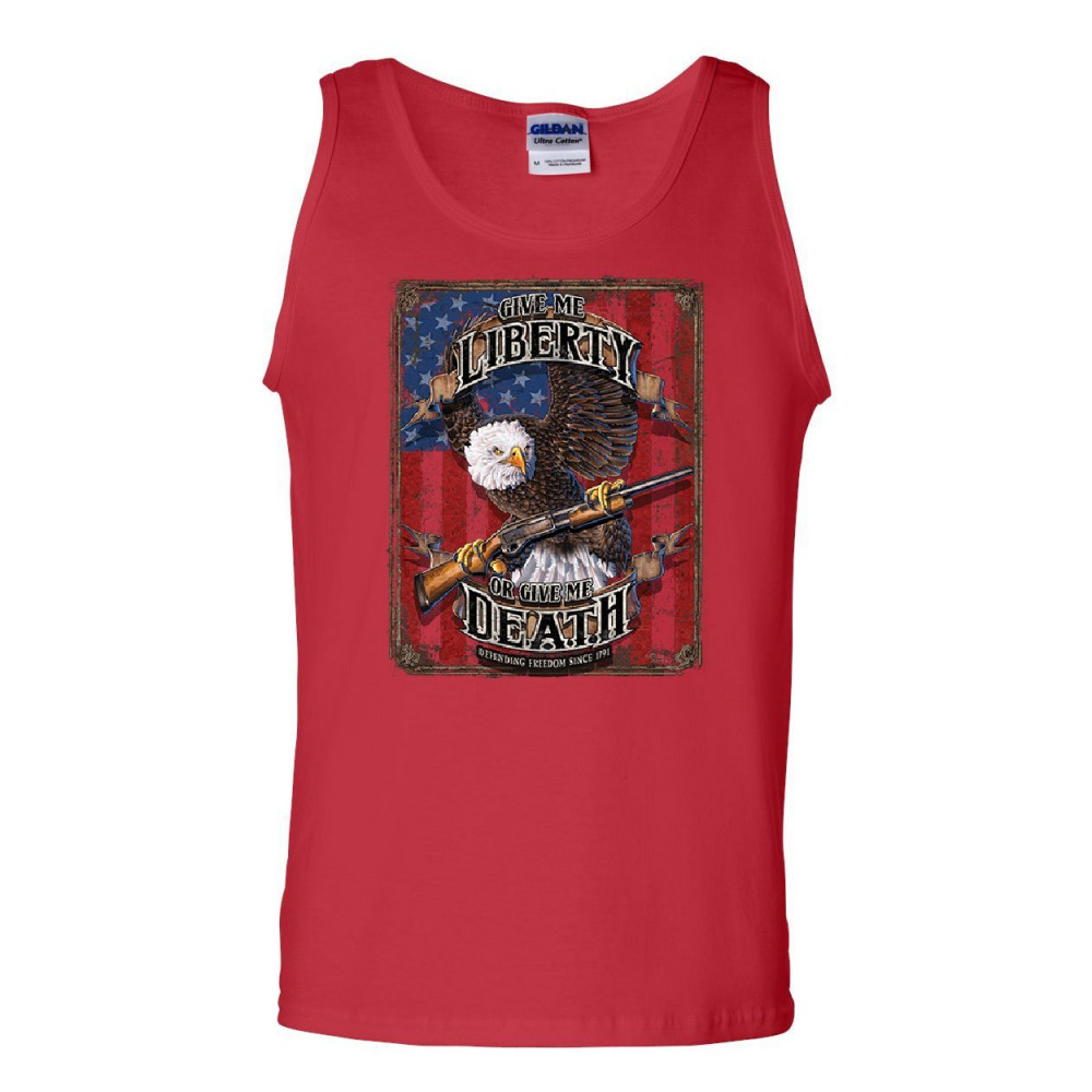 GIVE ME LIBERTY OR GIVE ME DEATH tank top eagle defend freedom 2a sleeveless red
