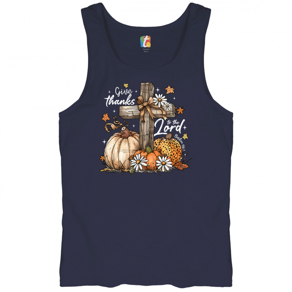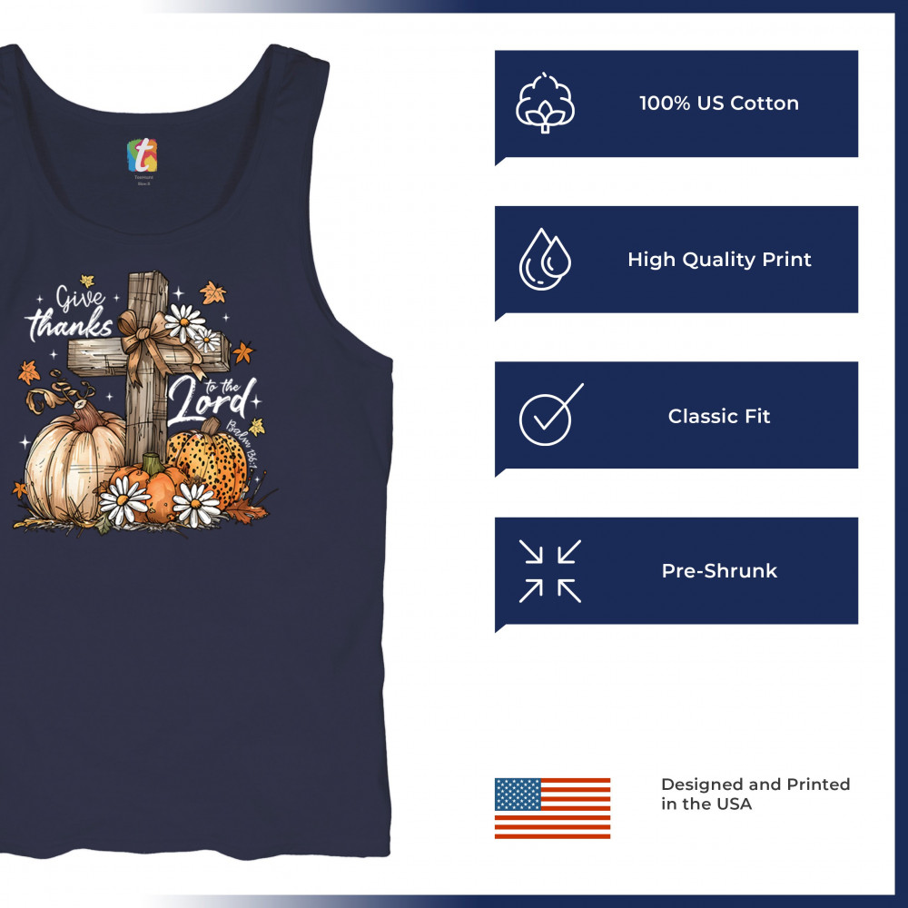 Thanksgiving design with pumpkins, daisies, and rustic cross. Perfect for Turkey Day, faithful family gatherings, and fall festival blessings.