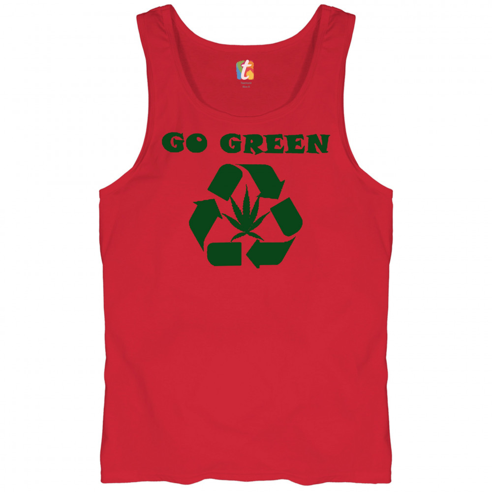 "Go Green" design combining a recycling symbol with a cannabis leaf. Perfect for those who love Mary Jane, sustainable living, and stoned humor.