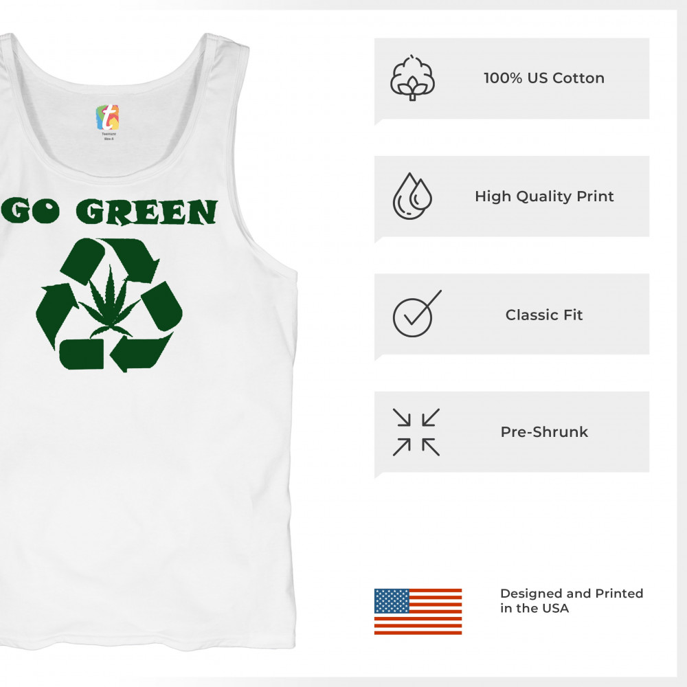 Embrace the green lifestyle with this "Go Green" design, a perfect blend of cannabis culture and environmental awareness. The design showcases a recycling symbol with a cannabis leaf, making it ideal for those who are passionate about Mary Jane and sustainable living. Whether you're chilling with your buds or advocating for legalizing pot, this design captures the essence of a relaxed, eco-conscious lifestyle. Show your love for the environment and cannabis with this unique and humorous design.