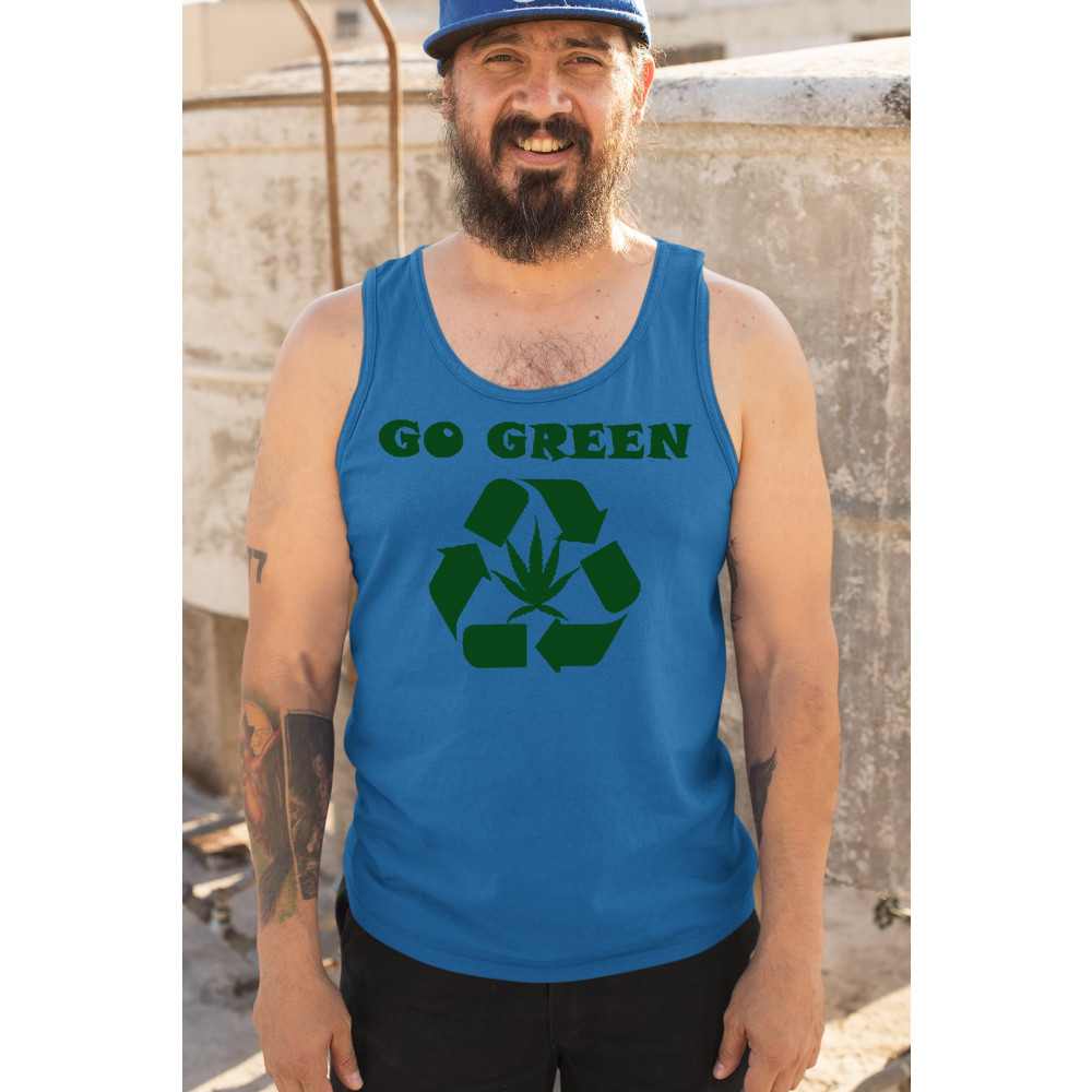 Embrace the green lifestyle with this "Go Green" design, a perfect blend of cannabis culture and environmental awareness. The design showcases a recycling symbol with a cannabis leaf, making it ideal for those who are passionate about Mary Jane and sustainable living. Whether you're chilling with your buds or advocating for legalizing pot, this design captures the essence of a relaxed, eco-conscious lifestyle. Show your love for the environment and cannabis with this unique and humorous design.