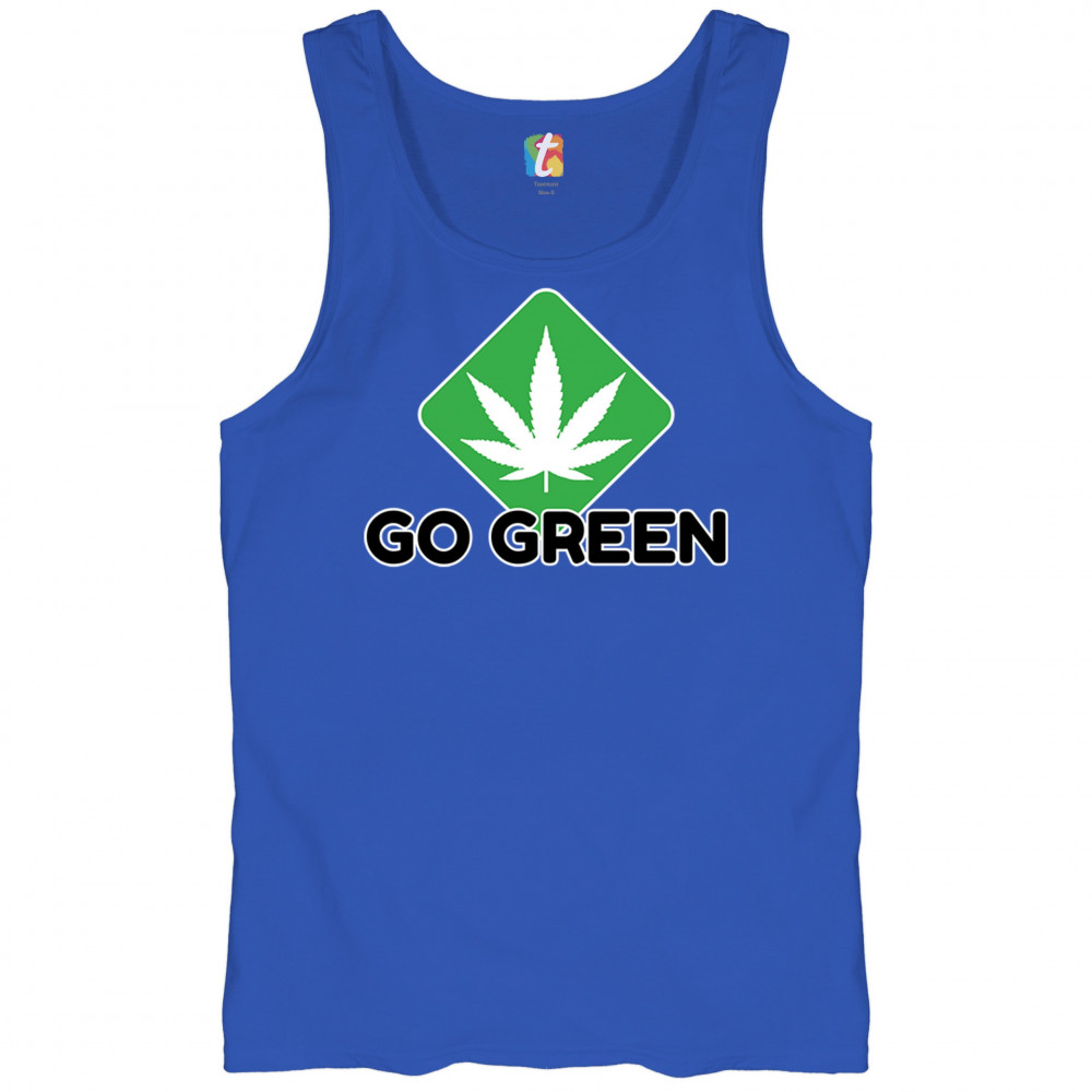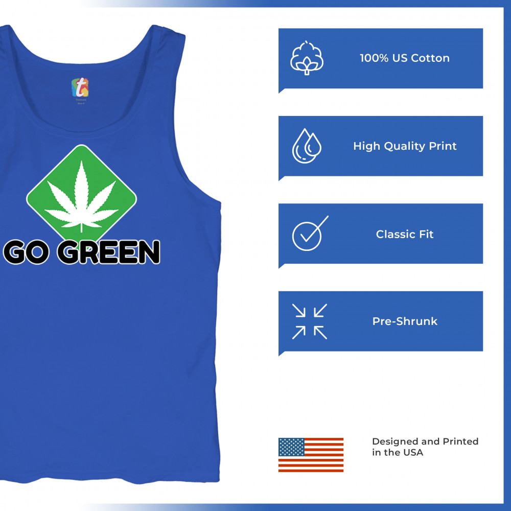 Bold Go Green design with cannabis leaf icon. Perfect for 420 fans, eco-conscious wearers, stoners, and marijuana advocates.