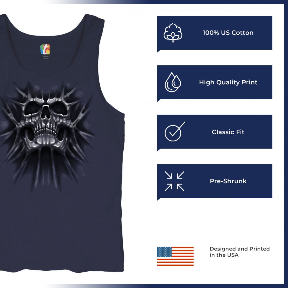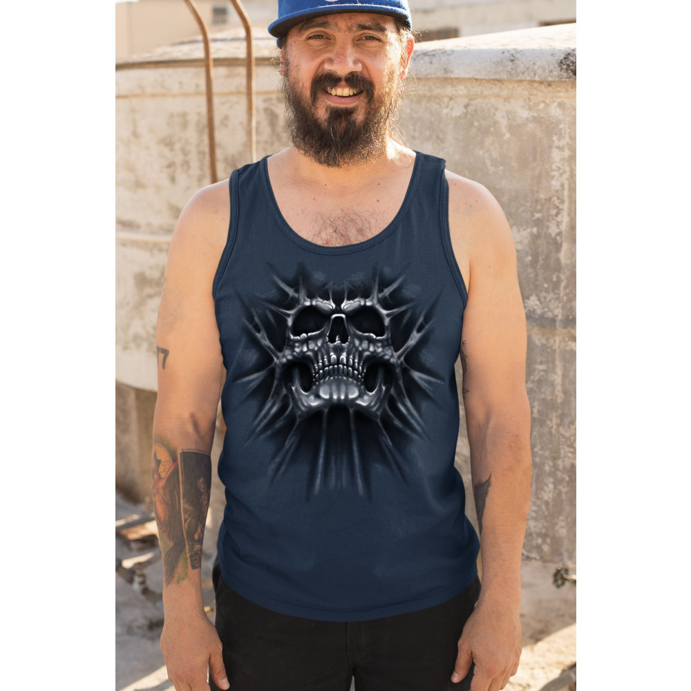Gothic skull biker shirt with roots design. Perfect for Metalhead, Rock n Roll fans, edgy rebel fashion, and spooky Halloween vibes.