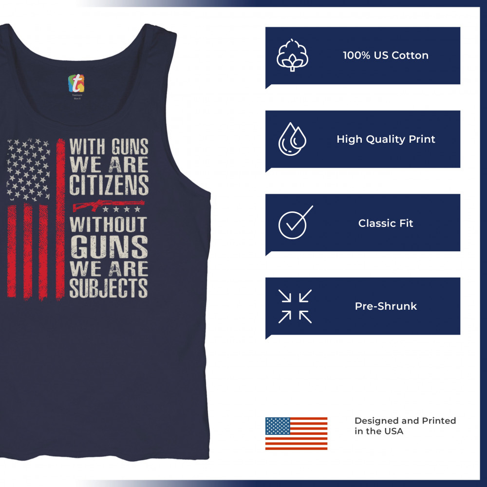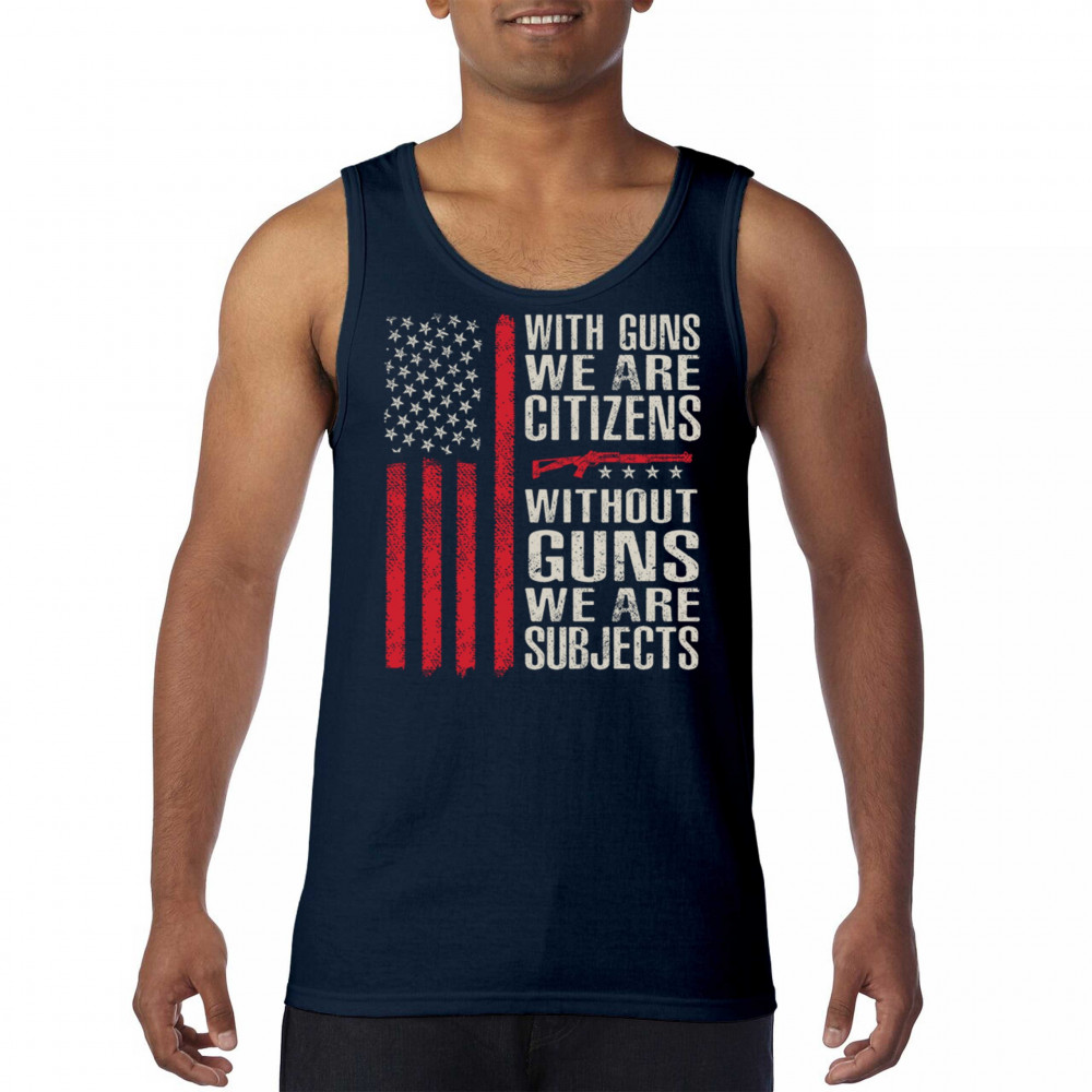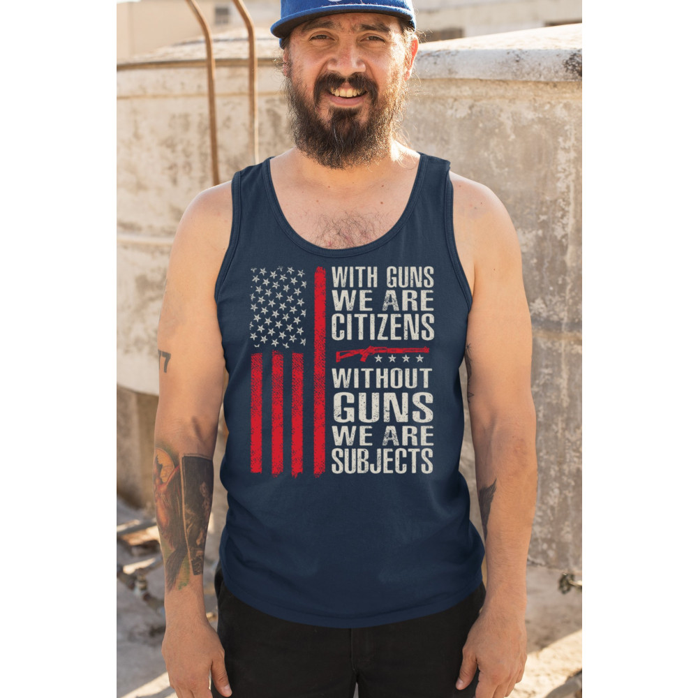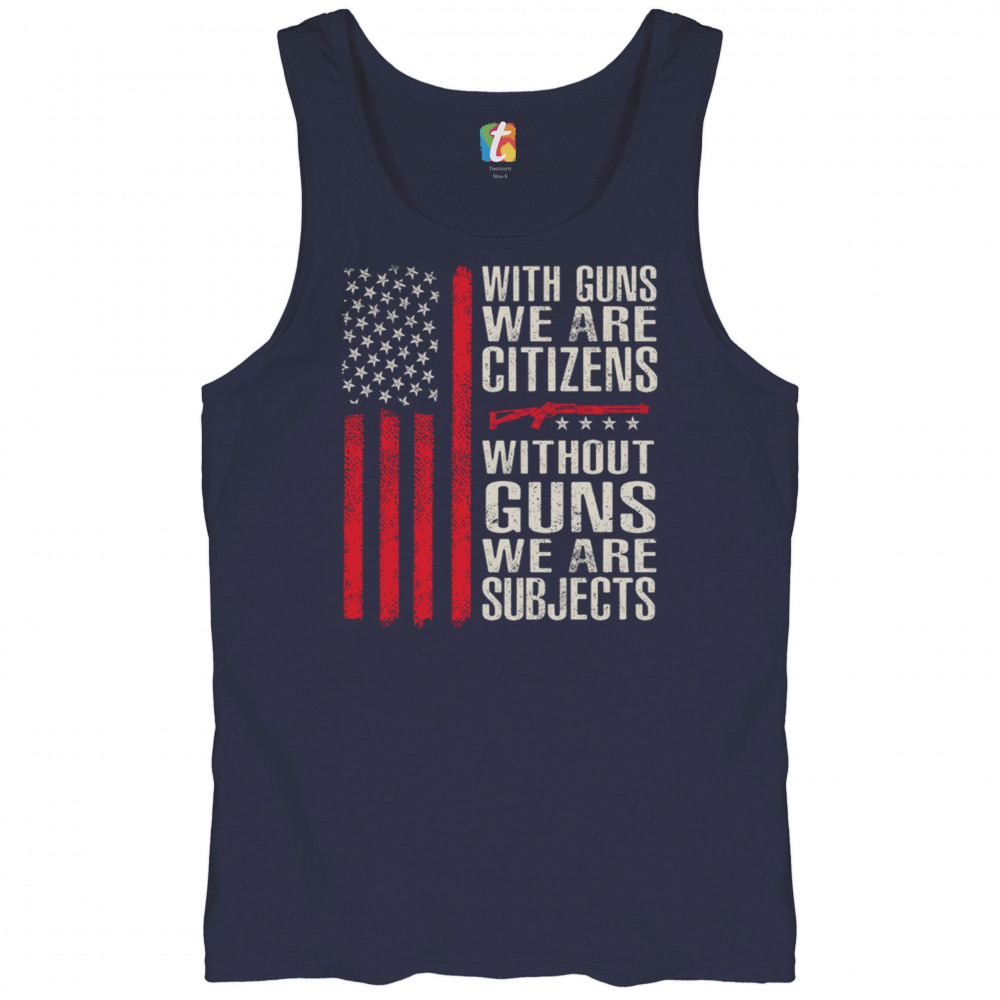 Make your voice heard with this powerful pro-2A design featuring an AR-15 graphic and distressed red American flag. The quote “With Guns We Are Citizens, Without Guns We Are Subjects†speaks directly to the heart of liberty and personal defense. A must-have for patriots, protestors, and gun rights supporters who defend the Constitution.