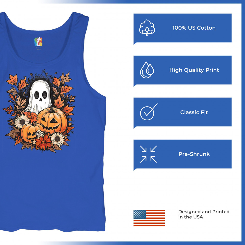 Celebrate the arrival of fall with this delightful design featuring pumpkins, autumn leaves, flowers, and a cute ghost. It's the perfect addition to your Halloween and autumn-themed wardrobe, or even as decor to welcome the fall spirit into your home. The combination of spooky and cozy elements creates a festive yet warm vibe, ideal for Halloween parties, pumpkin patch trips, or just enjoying the beautiful fall season.