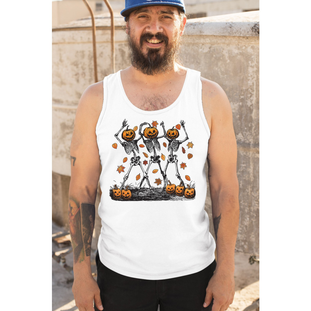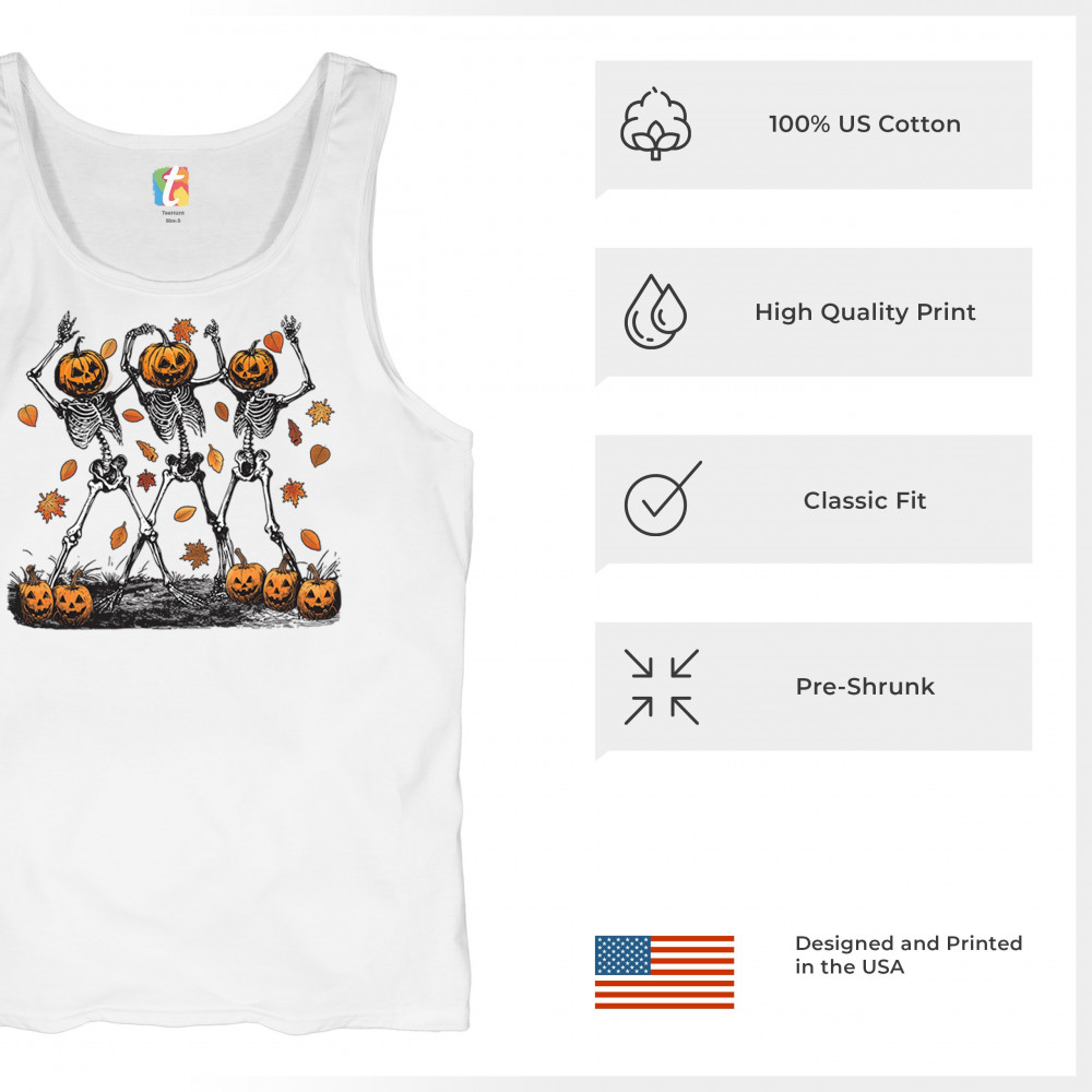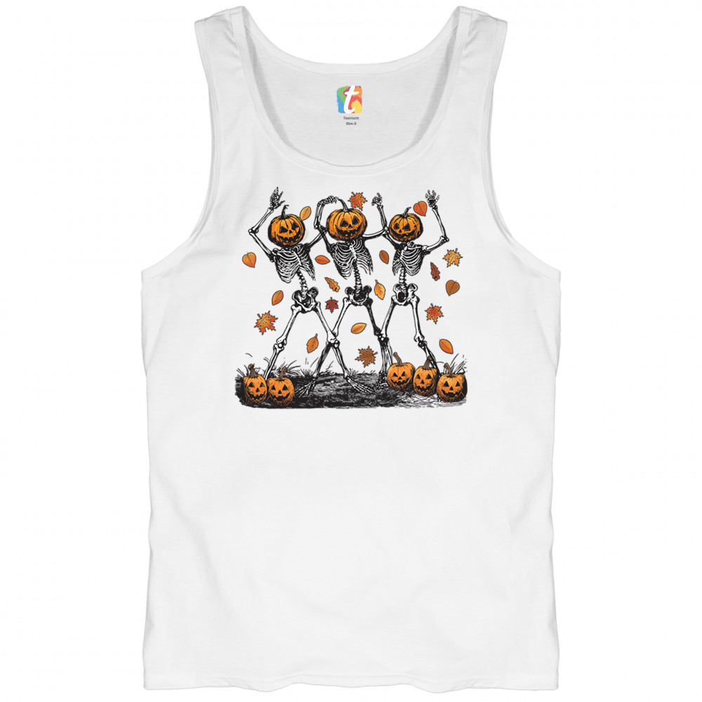 Add a touch of spooky fun to your wardrobe with this lively design featuring pumpkin-headed skeletons dancing through a swirl of autumn leaves. Perfect for Halloween parties, trick-or-treating, and fall festivals, this design is a must-have for anyone who enjoys the whimsical side of the spooky season. Made with comfort and quality in mind, this is the perfect apparel for all your October gatherings and events. Wear it to show off your Halloween spirit!