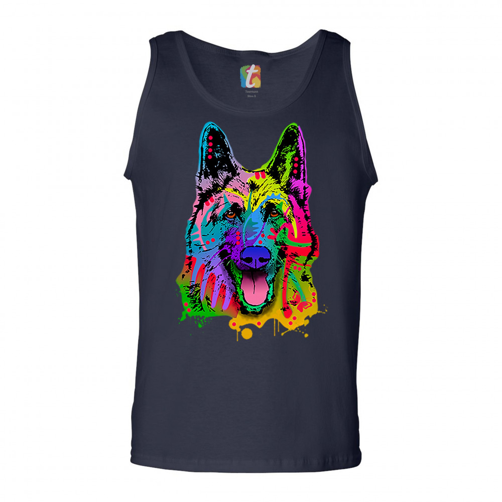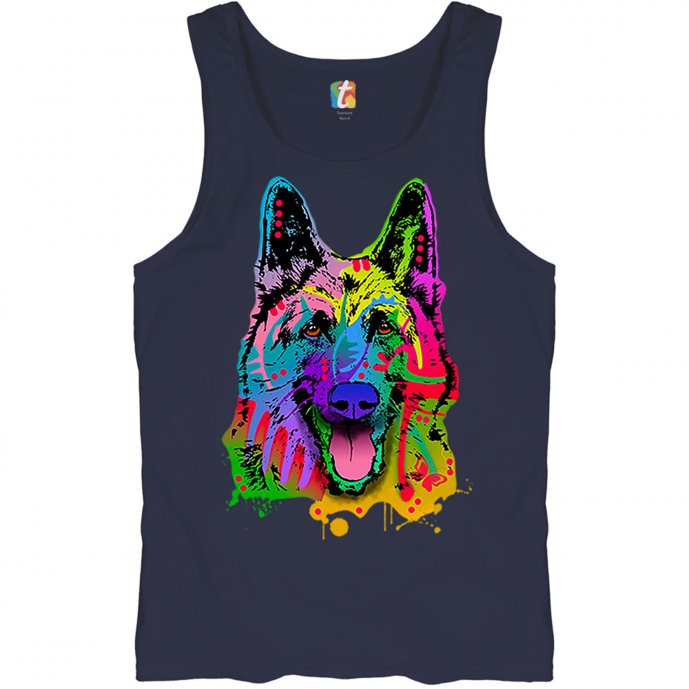 HAPPY GERMAN SHEPHERD tank top andy maxx i love my dog best friend men's top navy blue