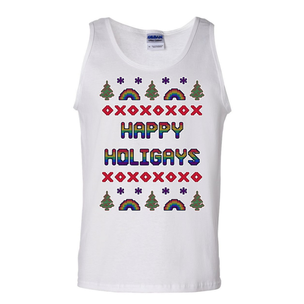 HAPPY HOLIGAYS tank top gay merry christmas ho ho ho lgbt xmas sleeveless white