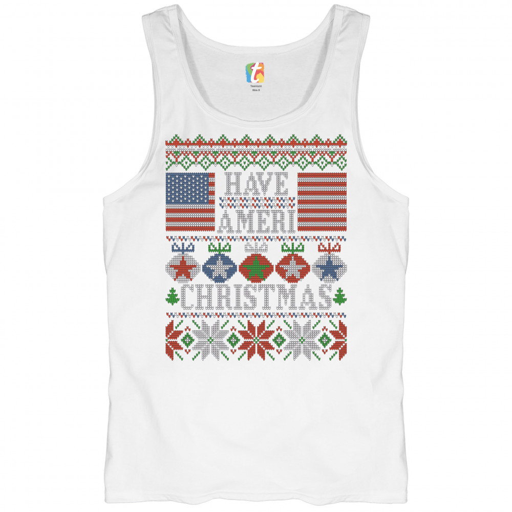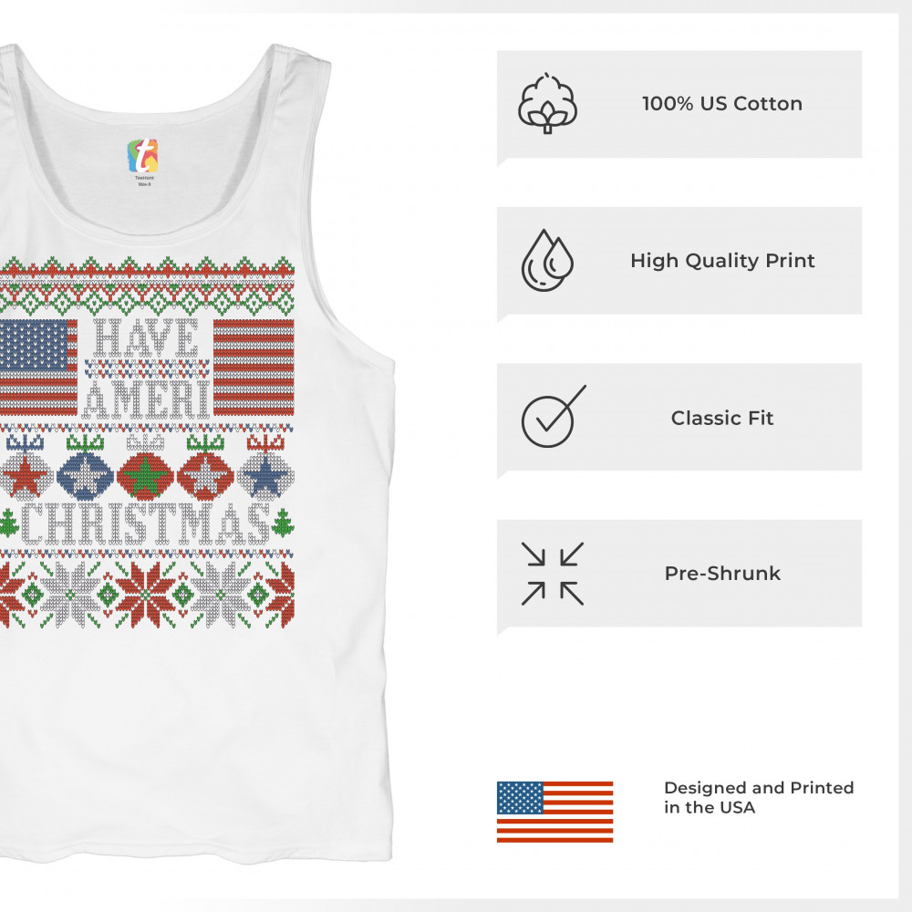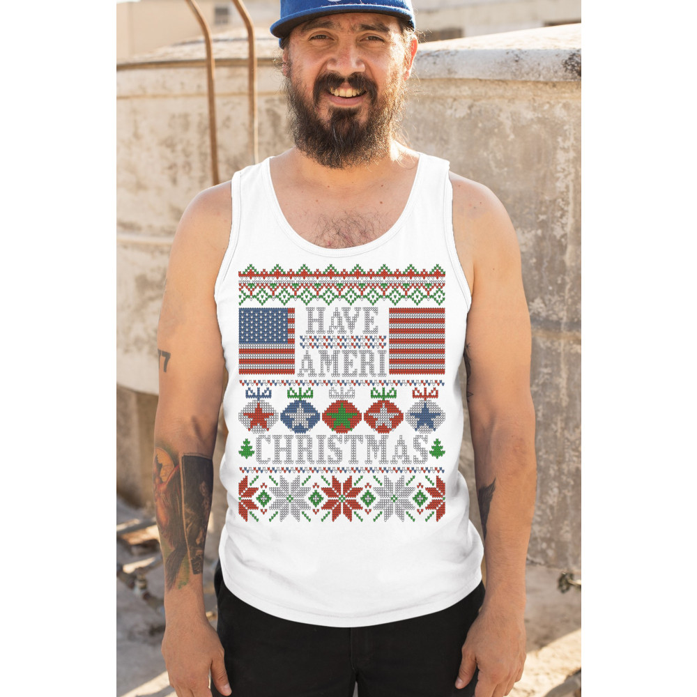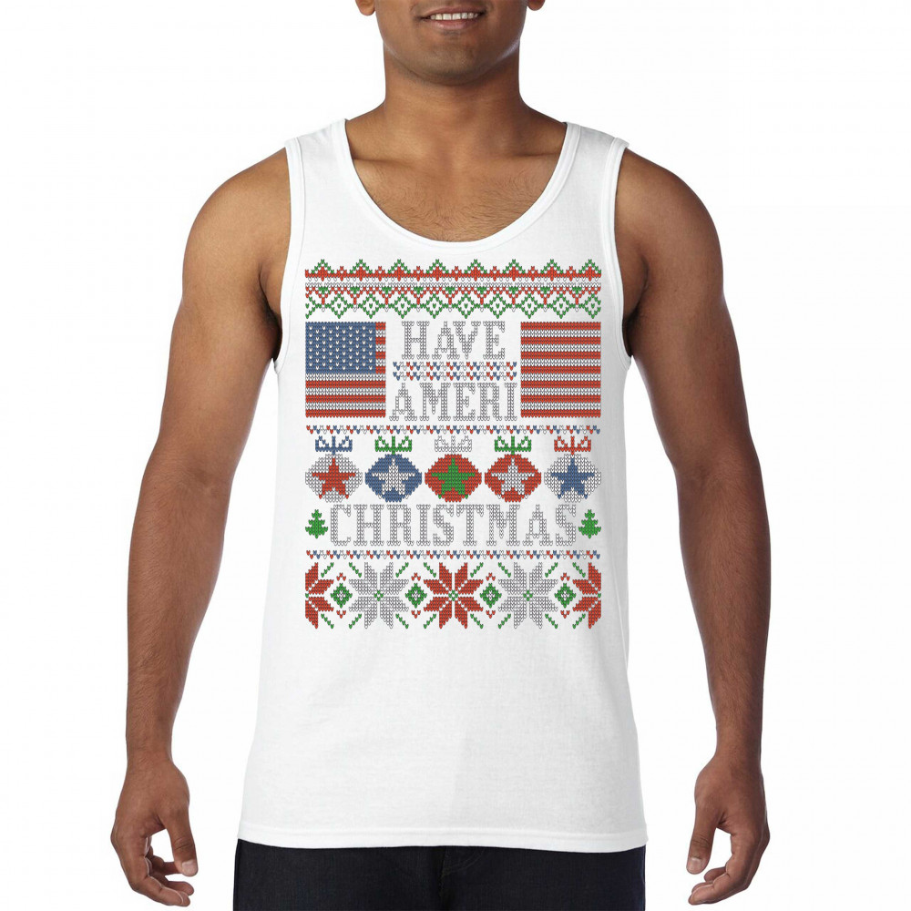 HAVE AMERI CHRISTMAS tank top american flag ugly sweater patriotic men's top white