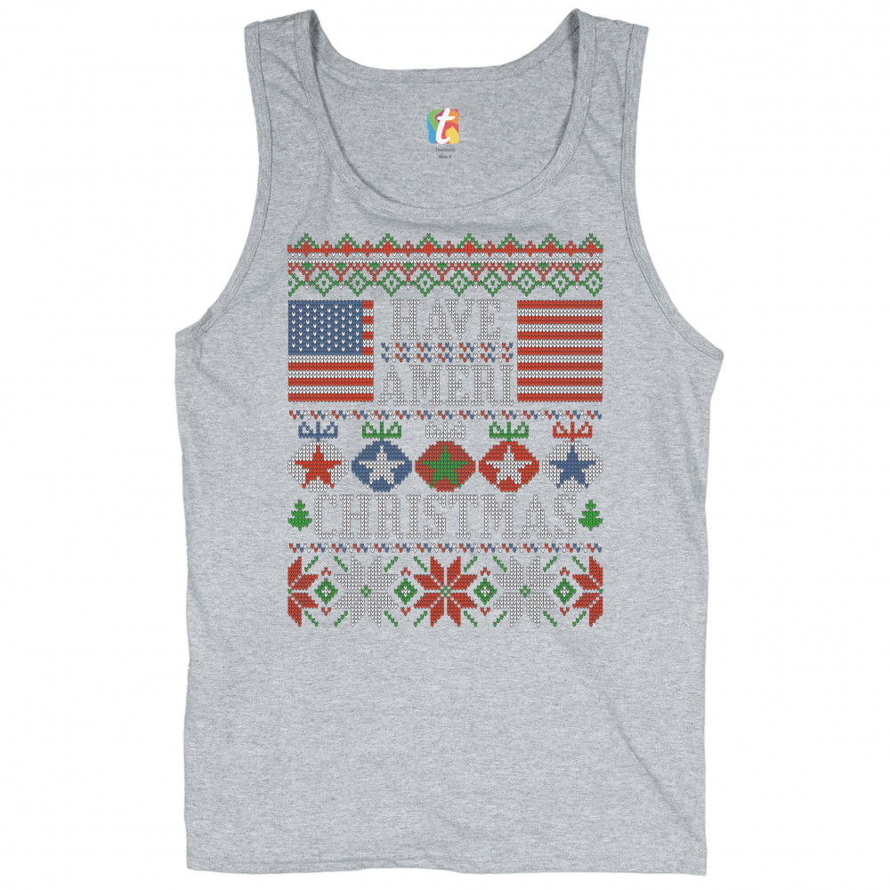 HAVE AMERI CHRISTMAS tank top american flag ugly sweater patriotic men's top gray