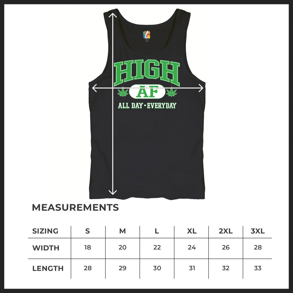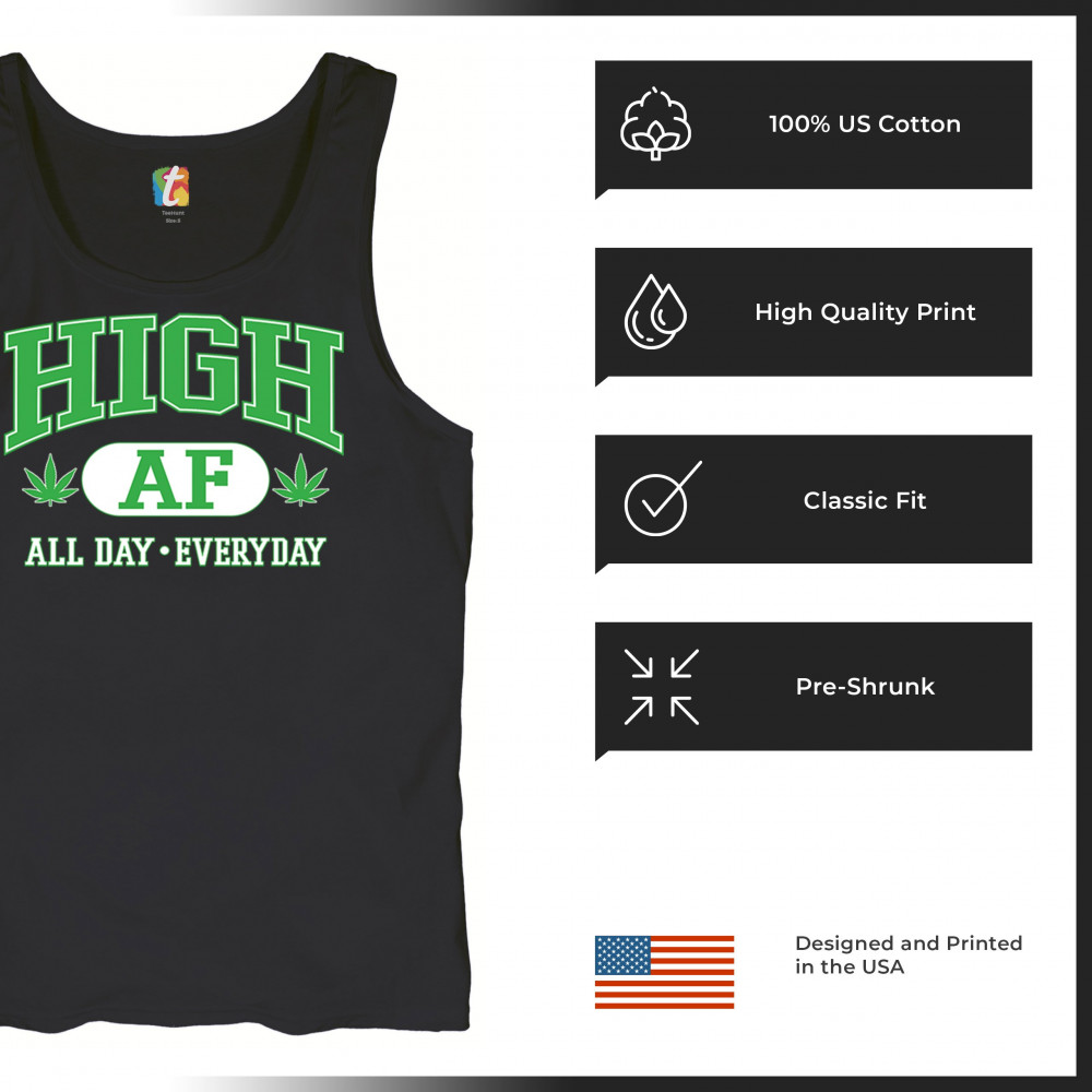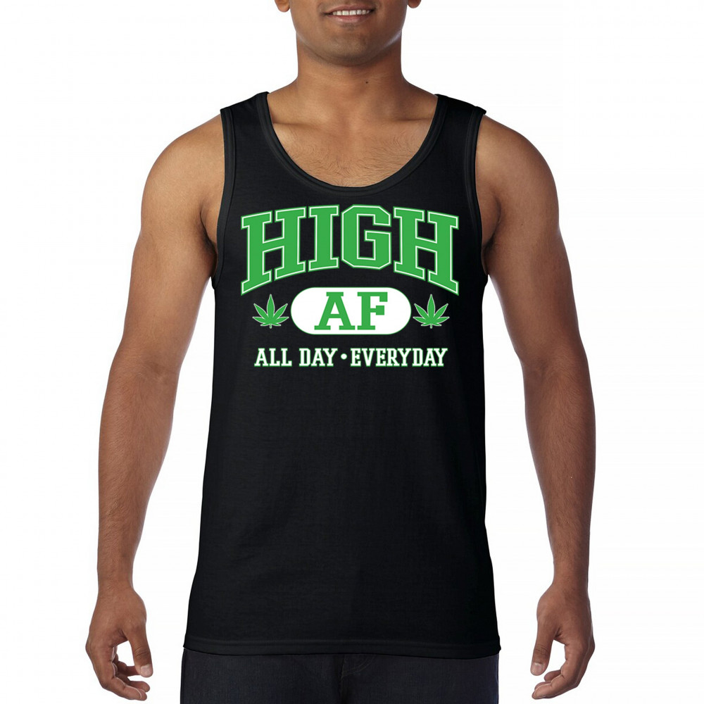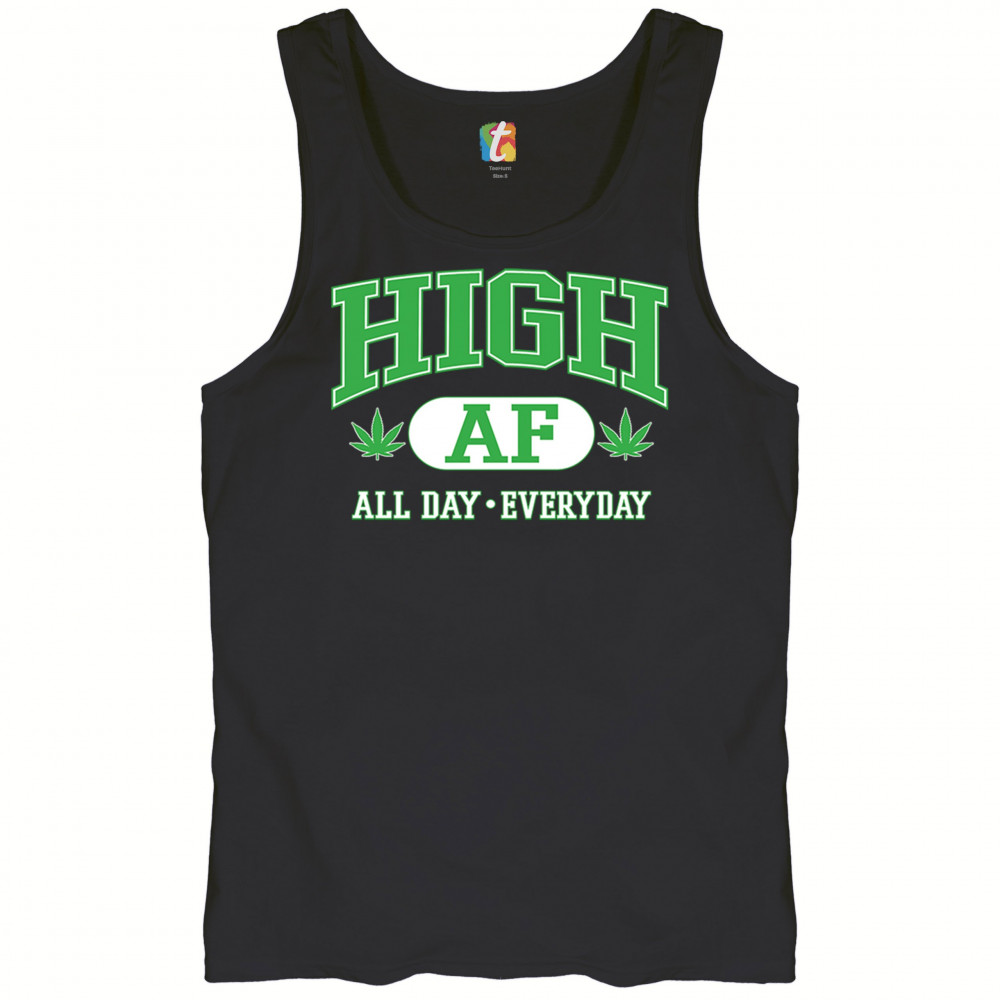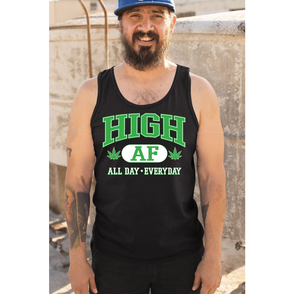 HIGH AF ALL DAY EVERYDAY tank top cannabis leaf stoner 420 thc kush men's top black