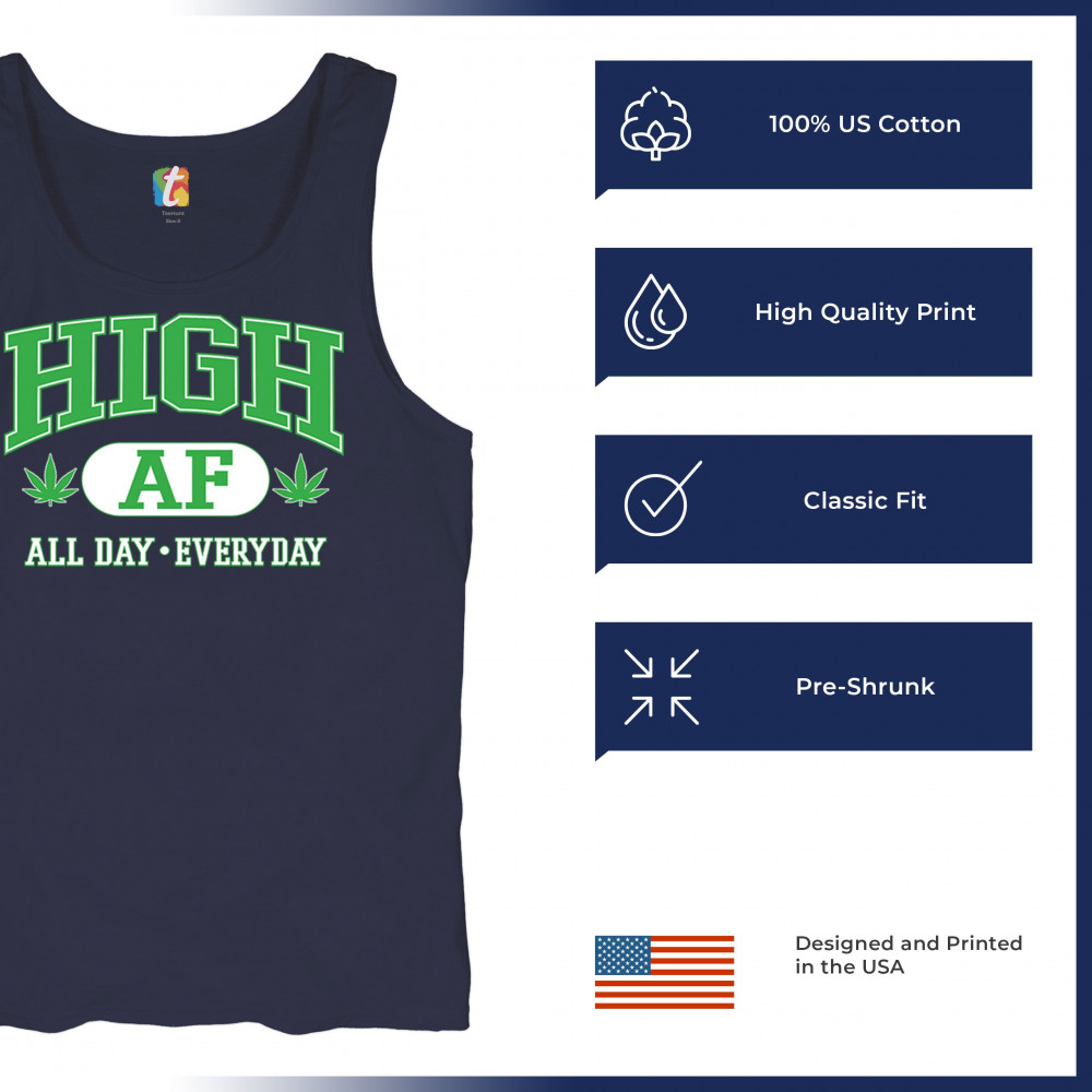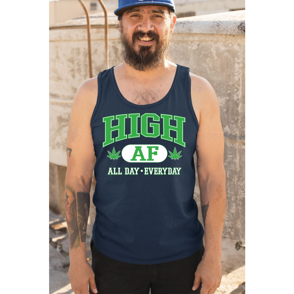 Stay lifted in style with this HIGH AF design, complete with bold letters, cannabis leaves, and the iconic “All Day · Everyday†slogan. It’s a loud, funny, and chill tribute to the 420 lifestyle—perfect for stoners, festival goers, and herb-loving free spirits who wear their vibe with pride.