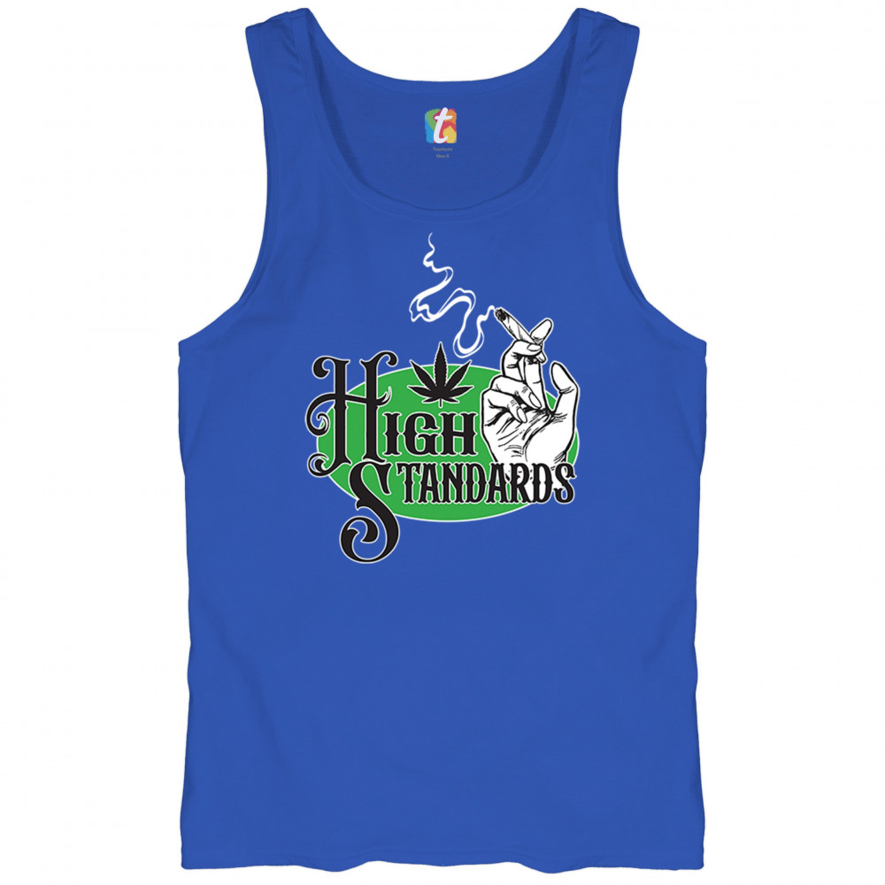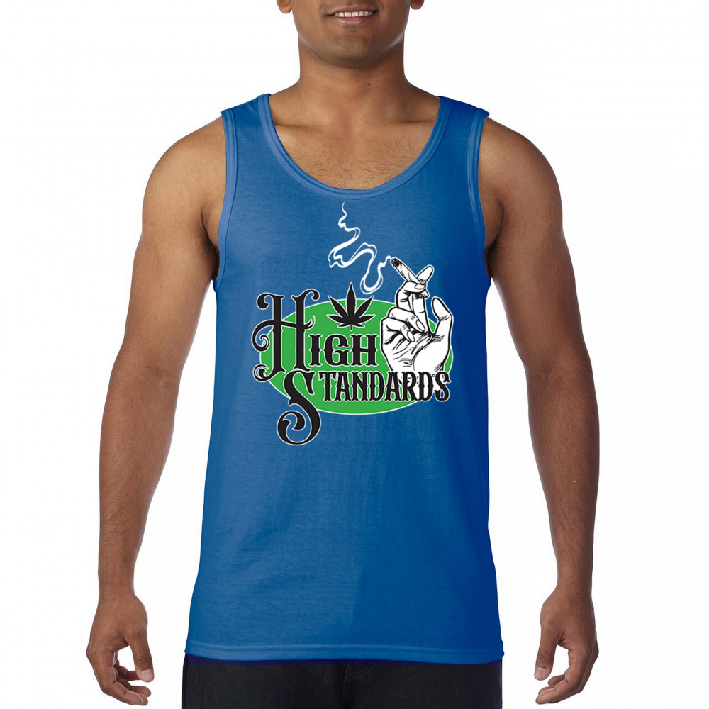High Standards weed design with blunt humor and stoner pride. Features joint, cannabis leaf, pothead attitude, and classy chillout vibes.