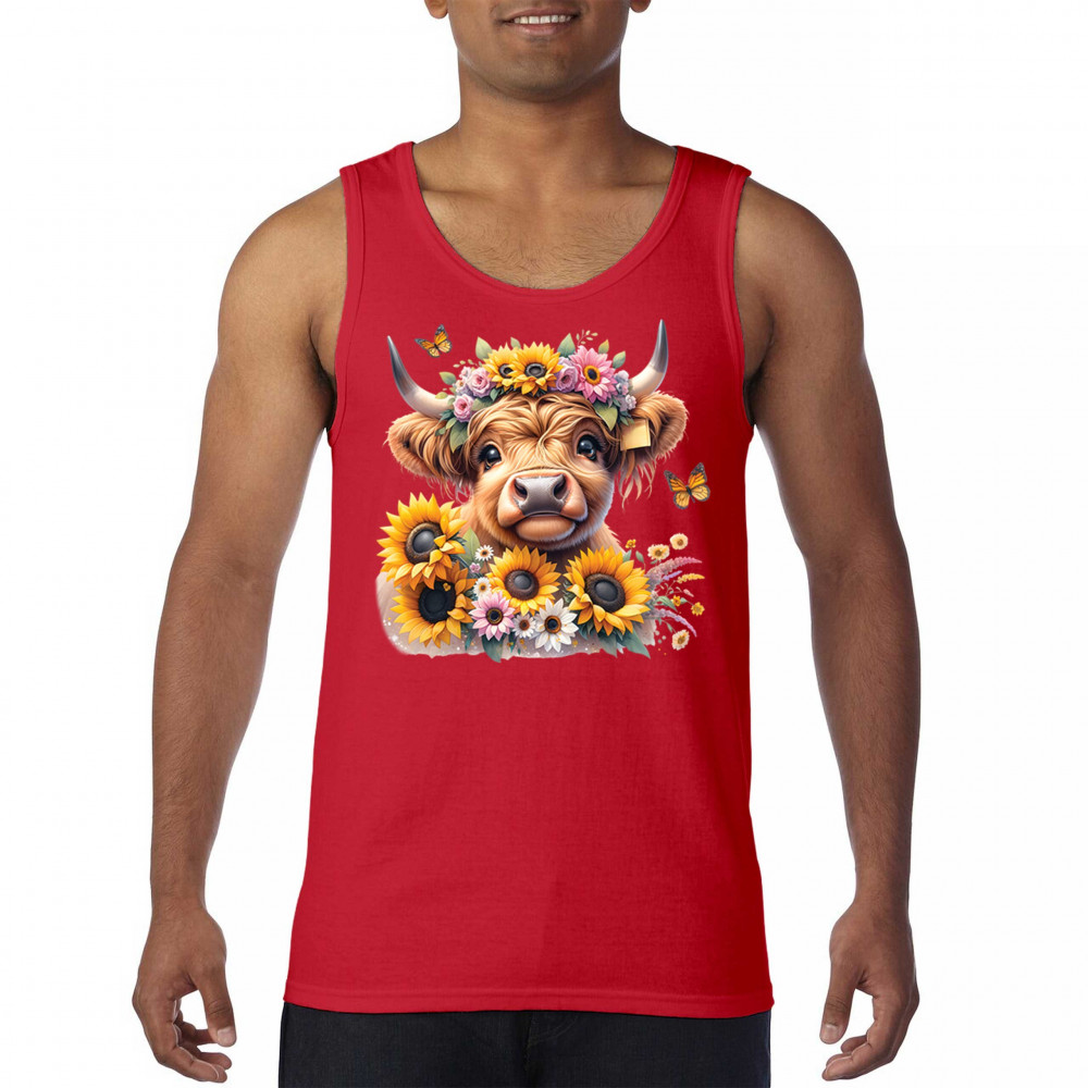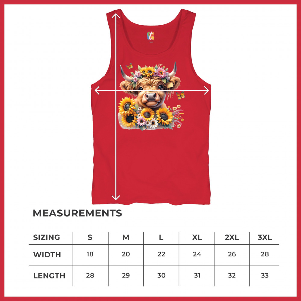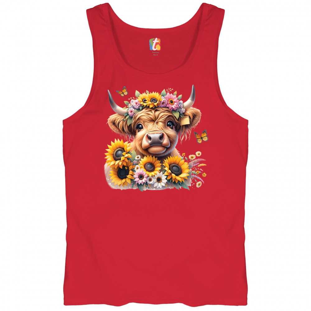 Highland Cow floral design with sunflowers and daisies, rustic farmhouse cow style, western ranch boho charm, and cozy country farmhouse shirt vibes.