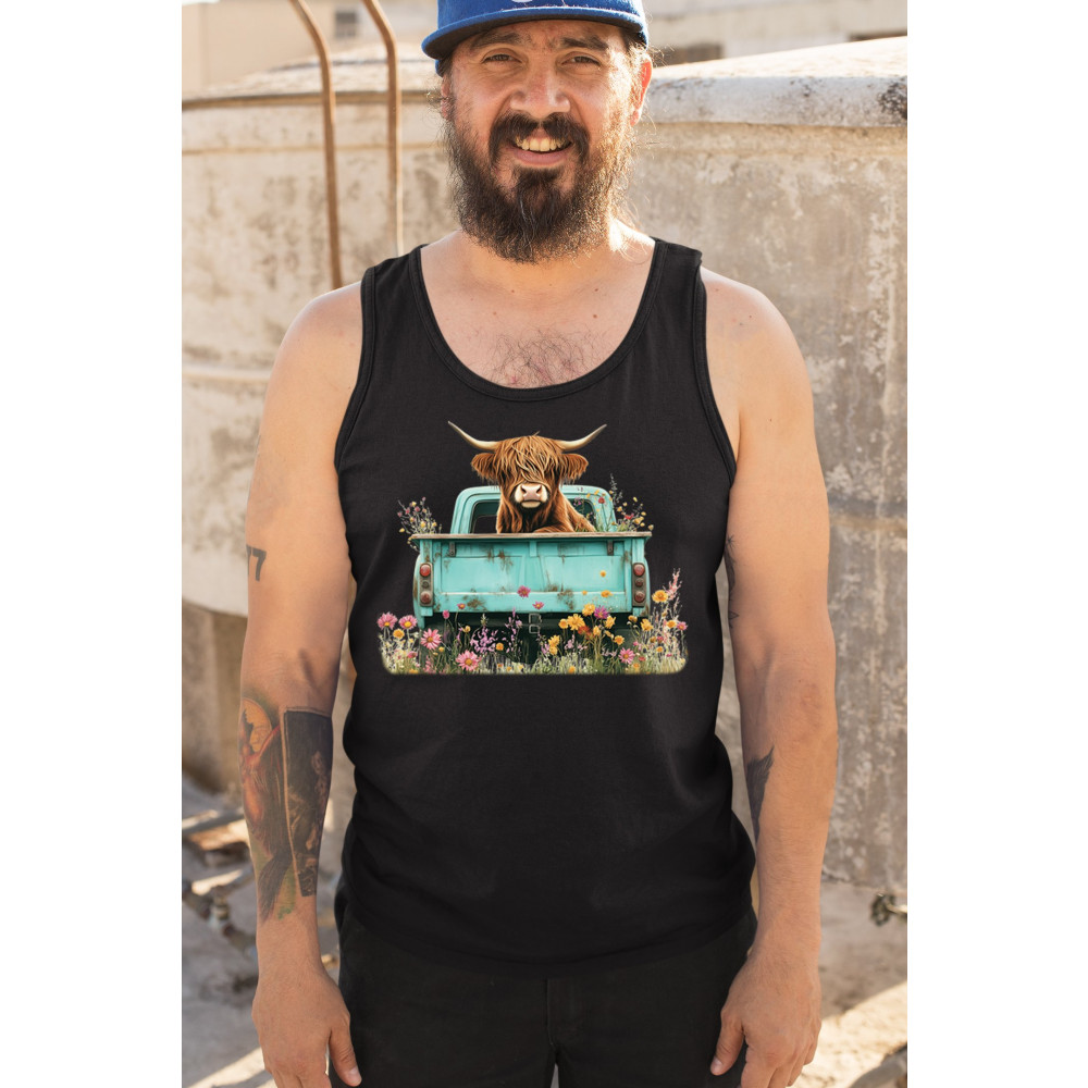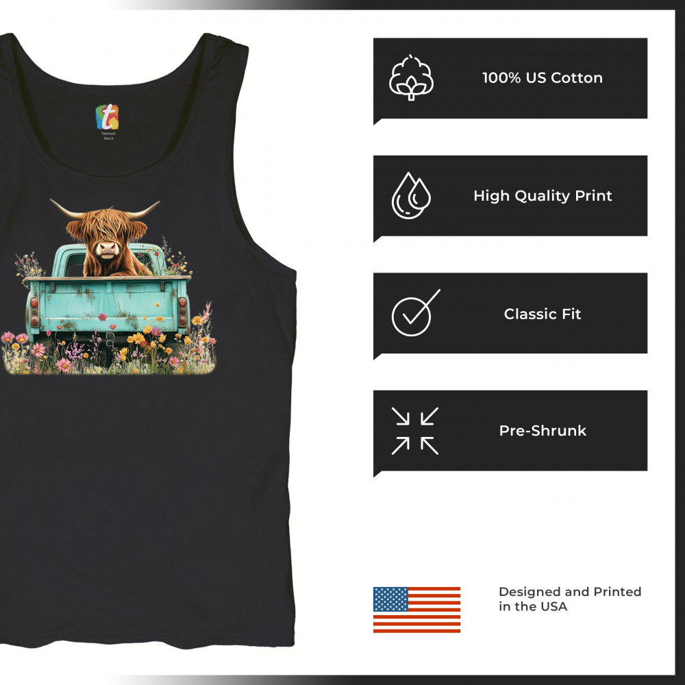 Celebrate rustic charm with this Highland Cow truck design, combining farmhouse floral truck art, boho ranch vibes, and country farmhouse shirt appeal. Perfect for cow lovers, barn style enthusiasts, and small town rural living. A vintage truck cow design that’s both cozy and stylish.