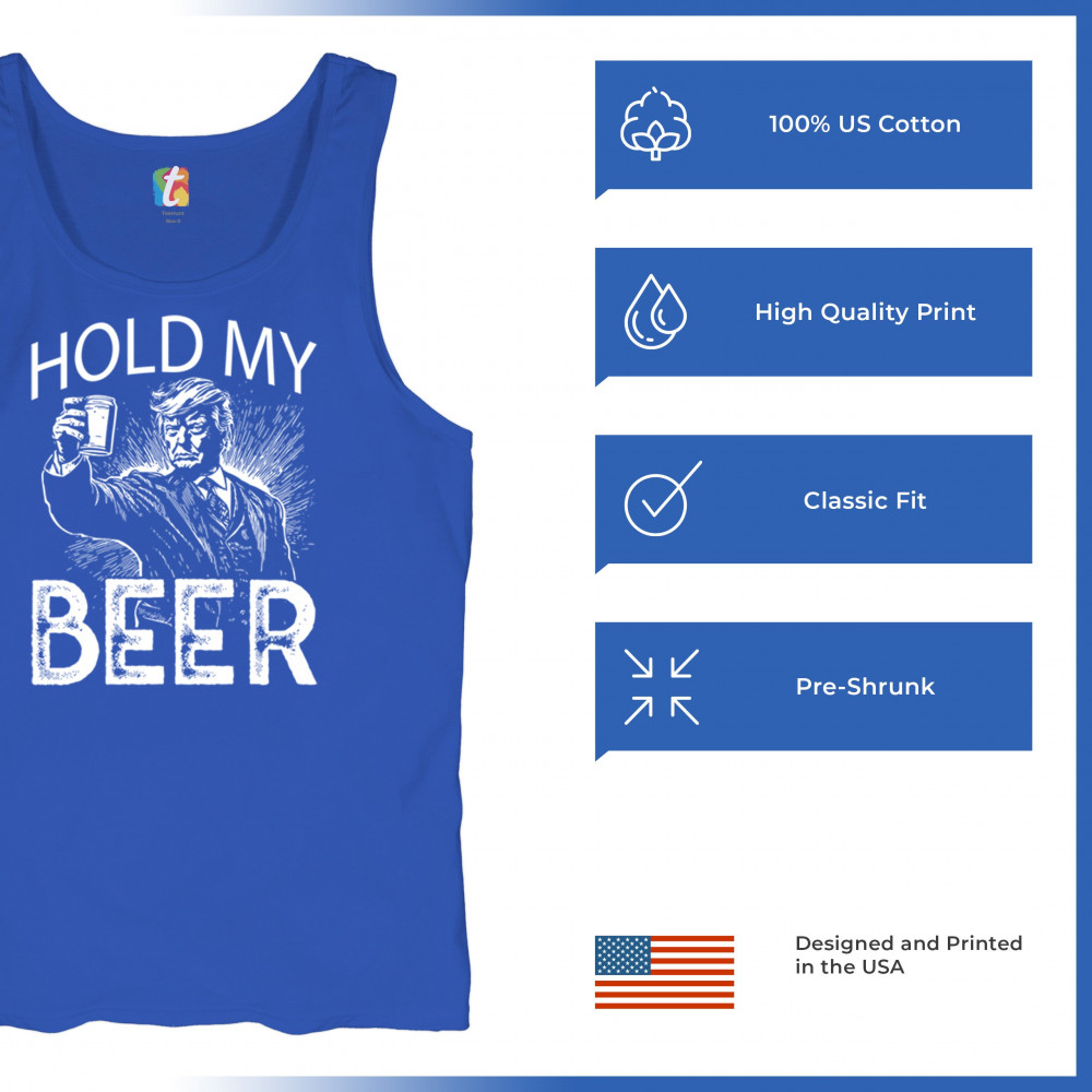 Celebrate the boldness of America First with the "Hold My Beer" design. A tribute to Trump supporters, conservatives, and proud patriots, this graphic humorously encapsulates the resilience and pride of the Red Wave movement. Perfect for rallies, casual gatherings, and those who proudly stand with Donald J. Trump, the 47th President, in the fight for freedom and the people's mandate.