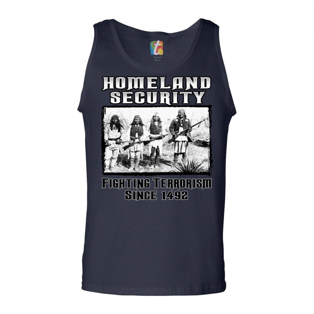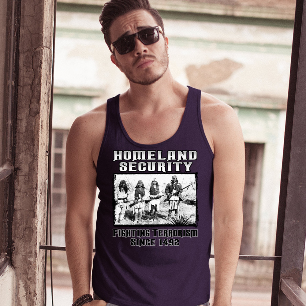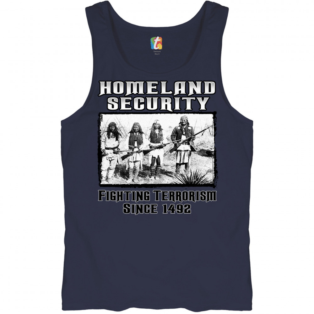 HOMELAND SECURITY tank top native american indigenous patriotic men's top navy blue