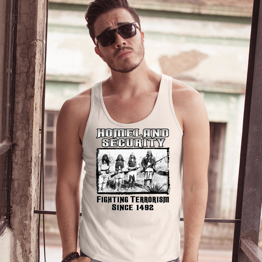 HOMELAND SECURITY tank top native american indigenous patriotic men's top white