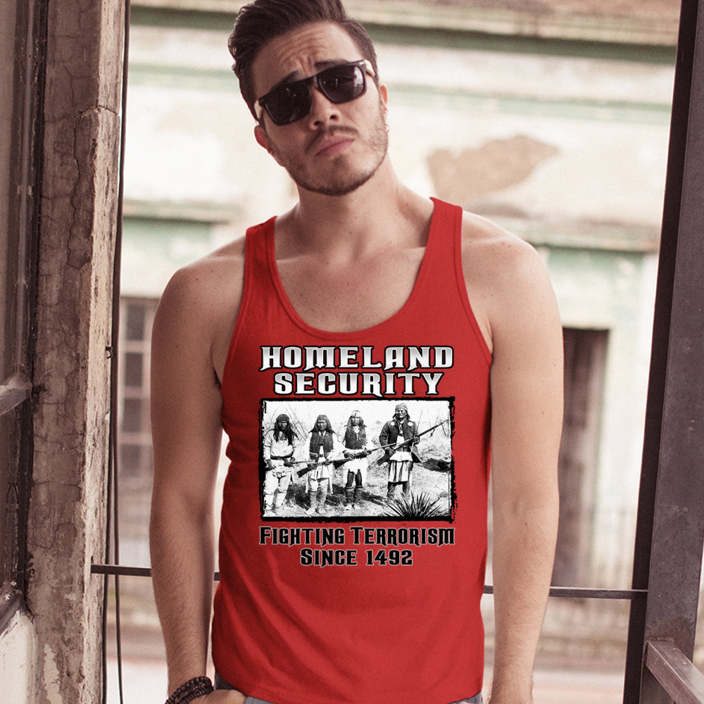 HOMELAND SECURITY tank top native american indigenous patriotic men's top red