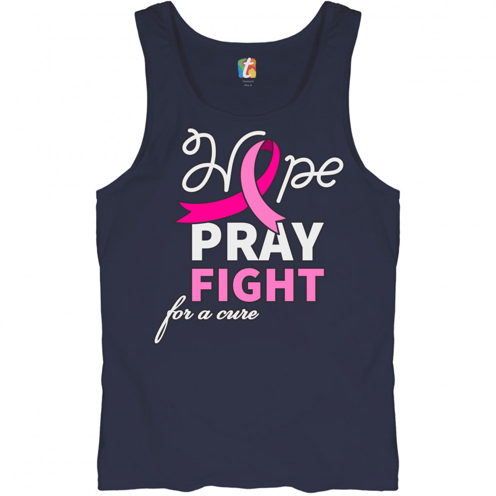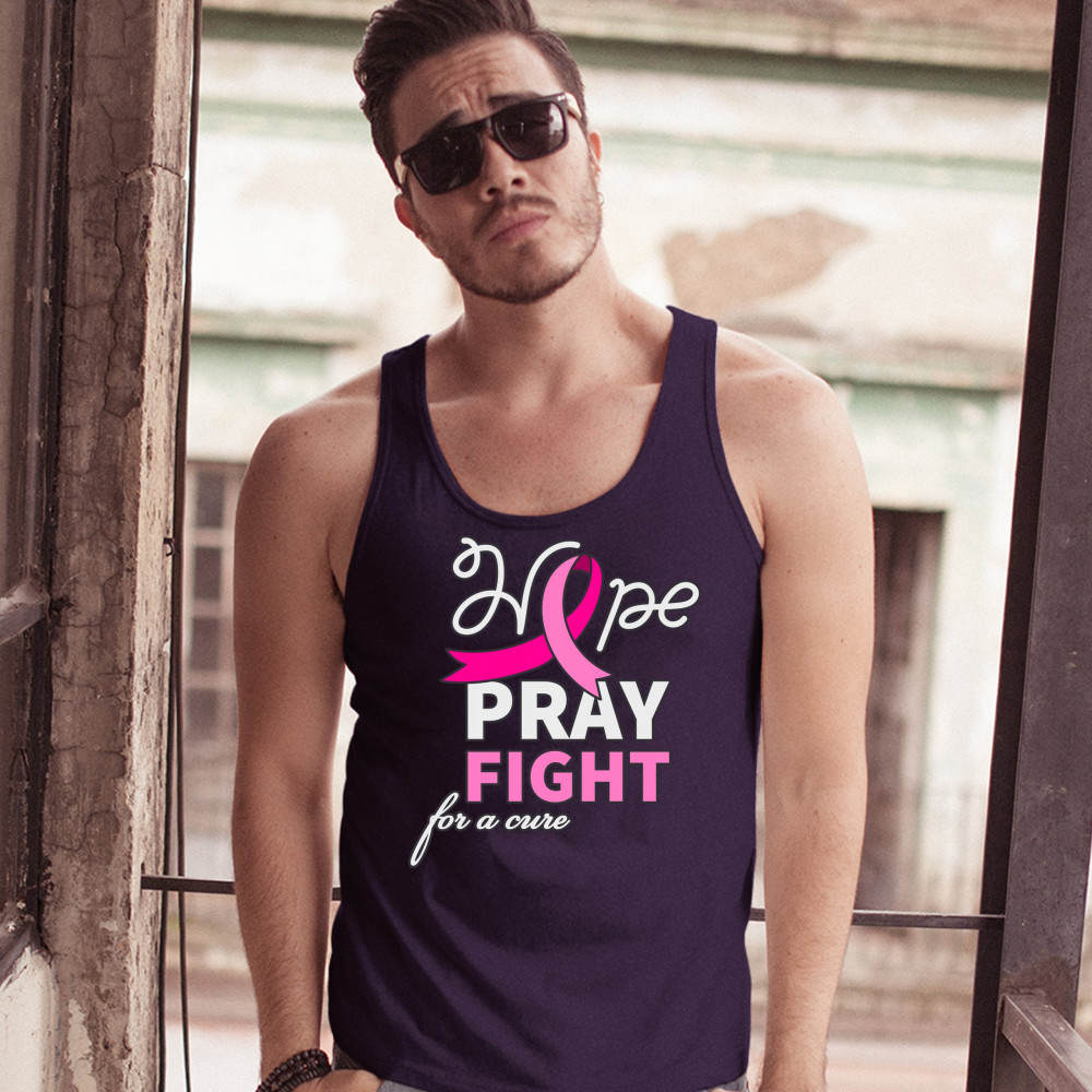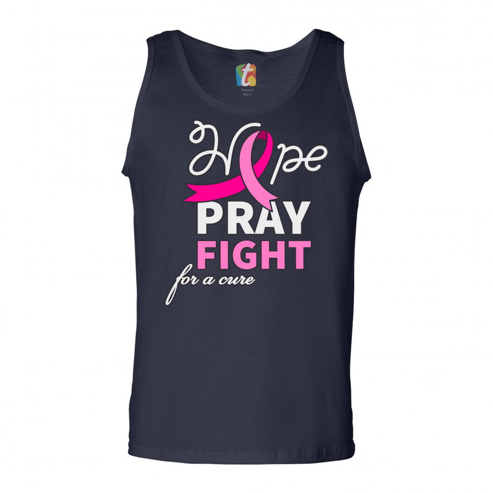 HOPE PRAY FIGHT FOR A CURE tank top cancer awareness pink ribbon men's top navy blue