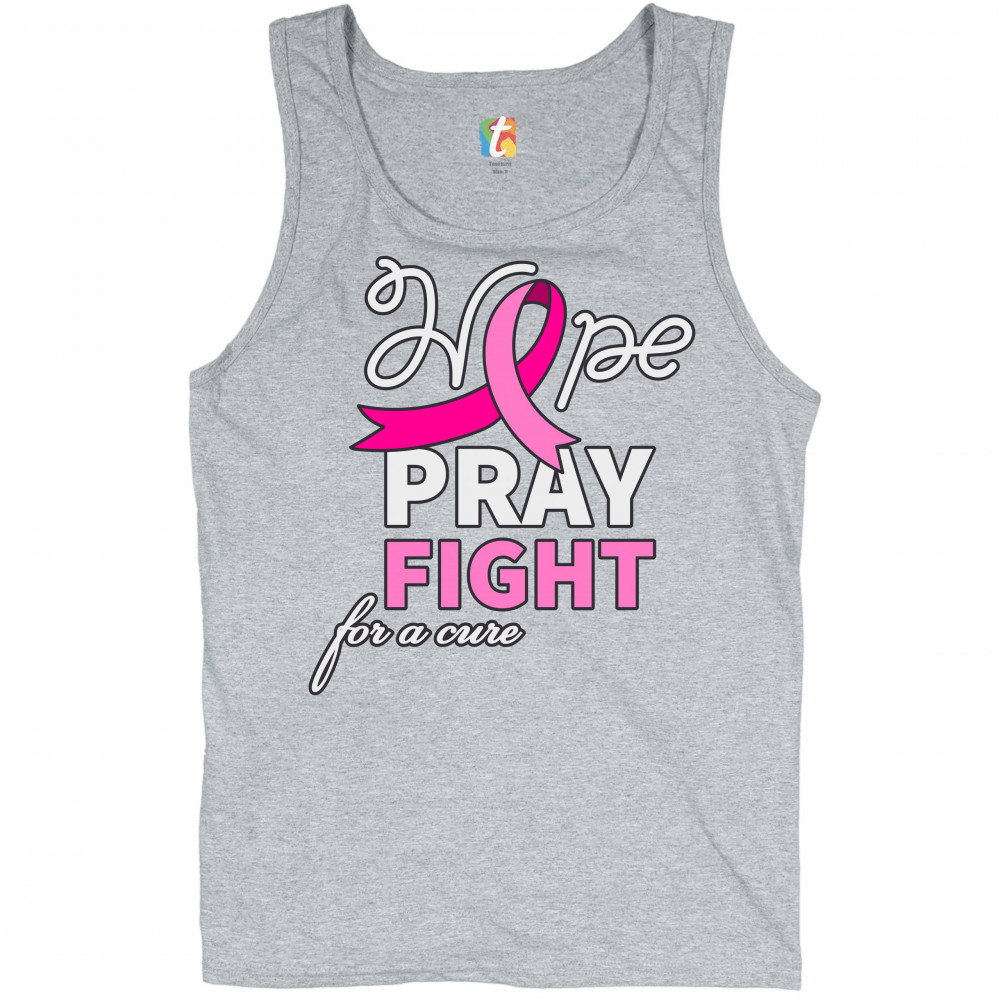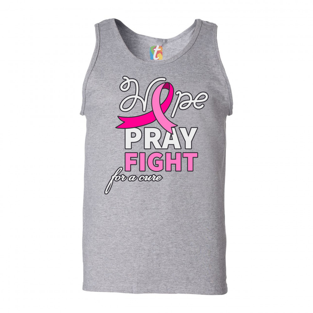 HOPE PRAY FIGHT FOR A CURE tank top cancer awareness pink ribbon men's top gray