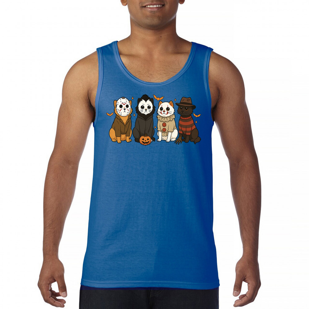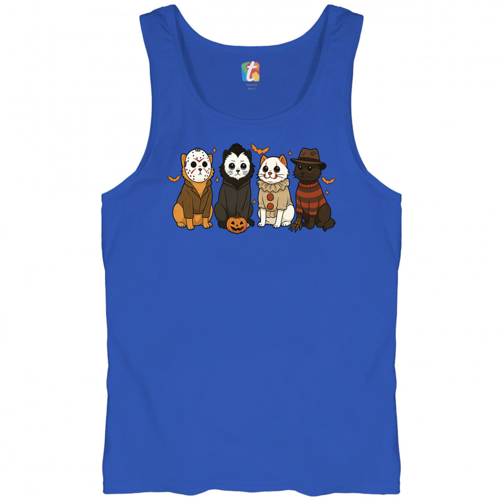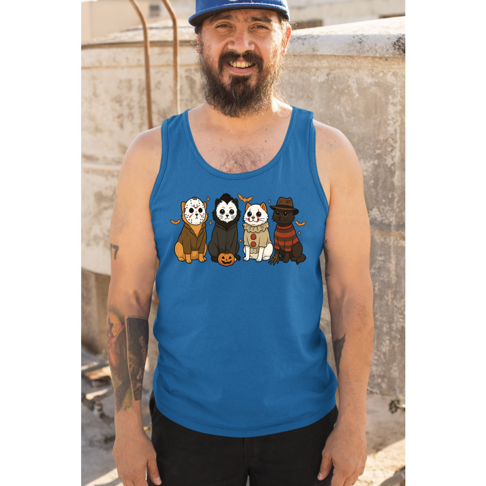 Horror Cats Halloween design with spooky costumes, Jack o Lantern details, and Haunted House vibes. Perfect October 31 outfit for cat lovers.