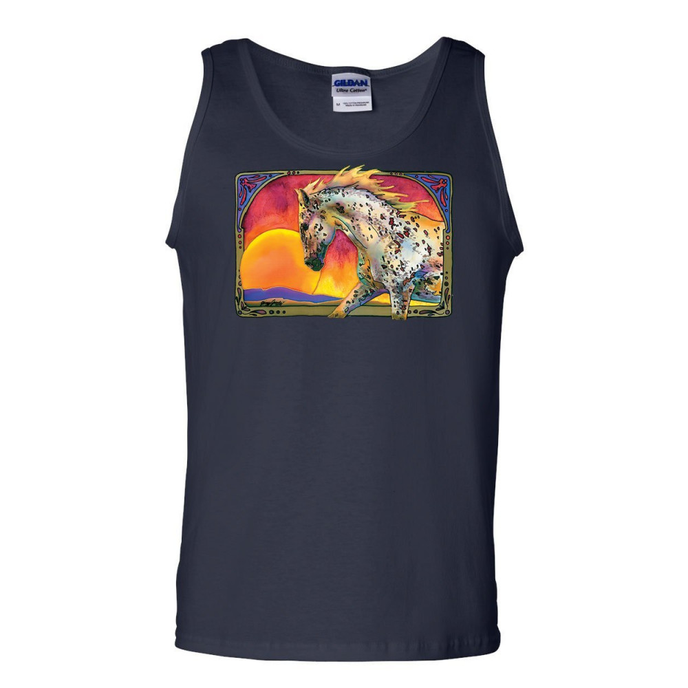 HORSE PRANCING IN SUNSET tank top animal wildlife mare stallion sleeveless navy blue