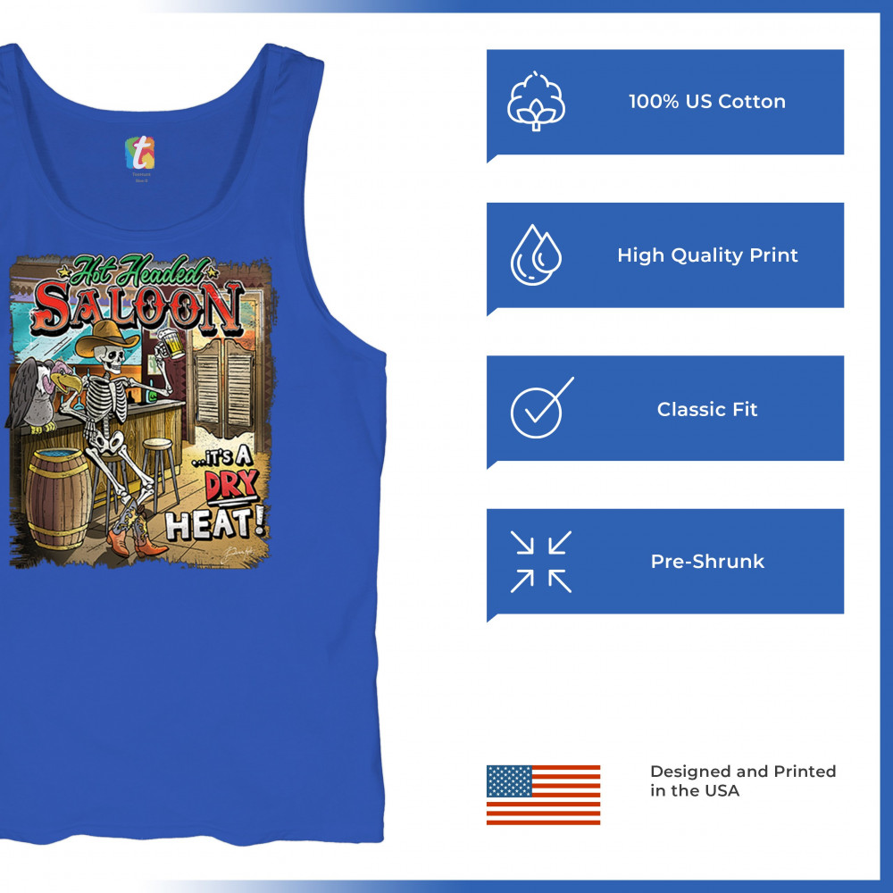 Raise a glass to style with our 'Hot Headed Saloon' t-shirt! Featuring a skeletal mixologist in a desert tavern, this tee blends humor with high-stakes western drama. Crafted for those who take their style like their whiskey – strong and full of character – it's more than just apparel; it's a wearable tale of the wild, wild west. Add this conversation piece to your collection and tip your hat to a bygone era with a laugh.