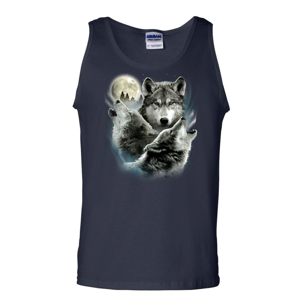 WOLF PACK HOWLING UP TO THE MOON howling wolf pack tank top wild wilderness animals nature moon sleeveless navy blue
