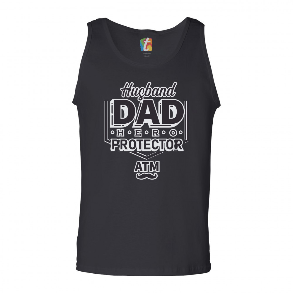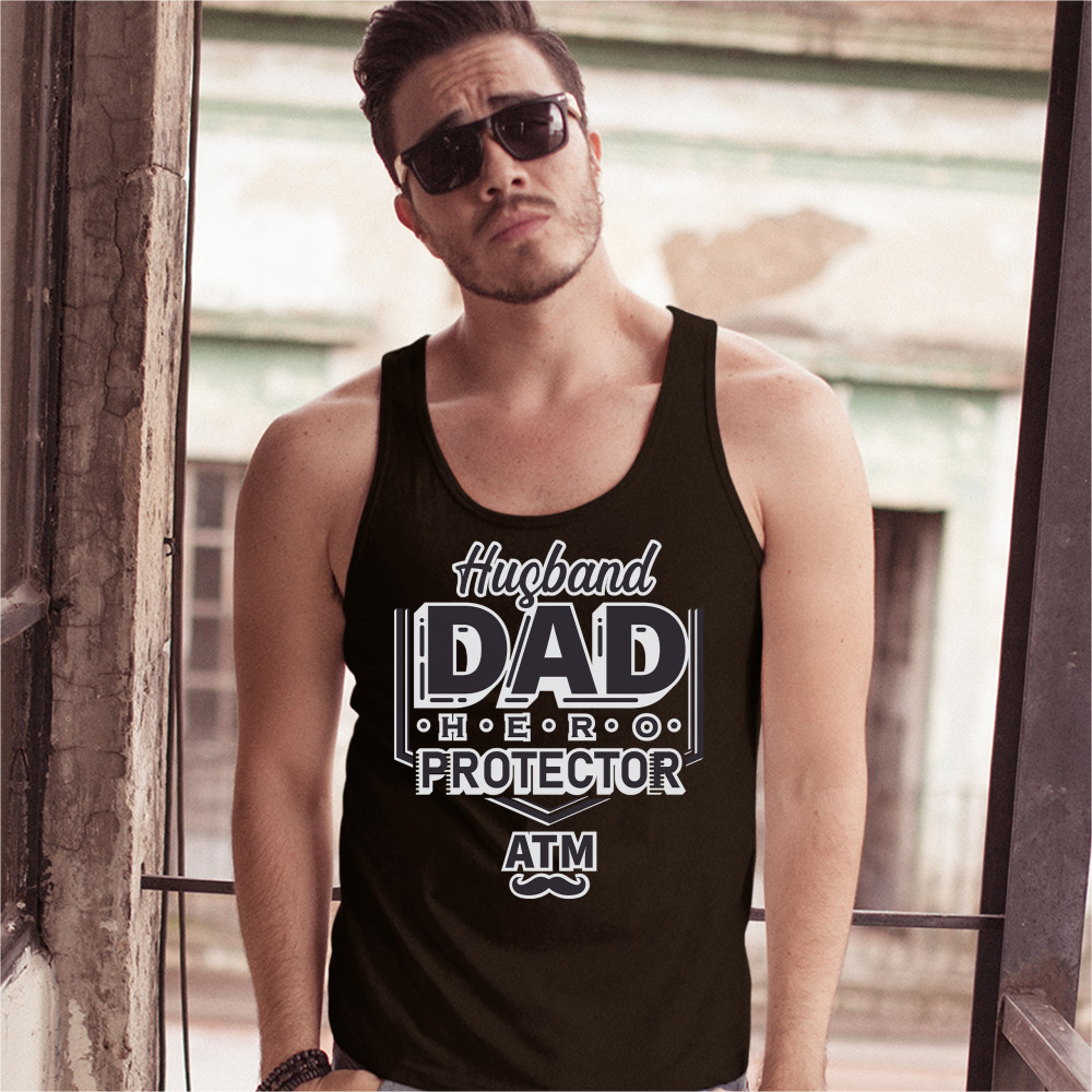 HUSBAND DAD PROTECTOR HERO ATM tank top father's day papa daddy men's top black