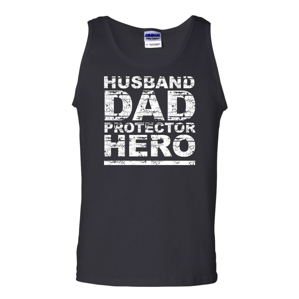 HUSBAND DAD PROTECTOR HERO tank top father's day daddy parenthood sleeveless black