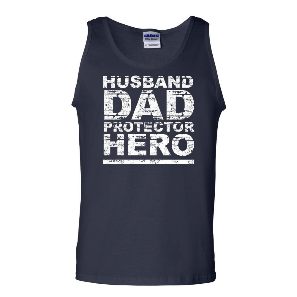 HUSBAND DAD PROTECTOR HERO tank top father's day daddy parenthood sleeveless navy blue