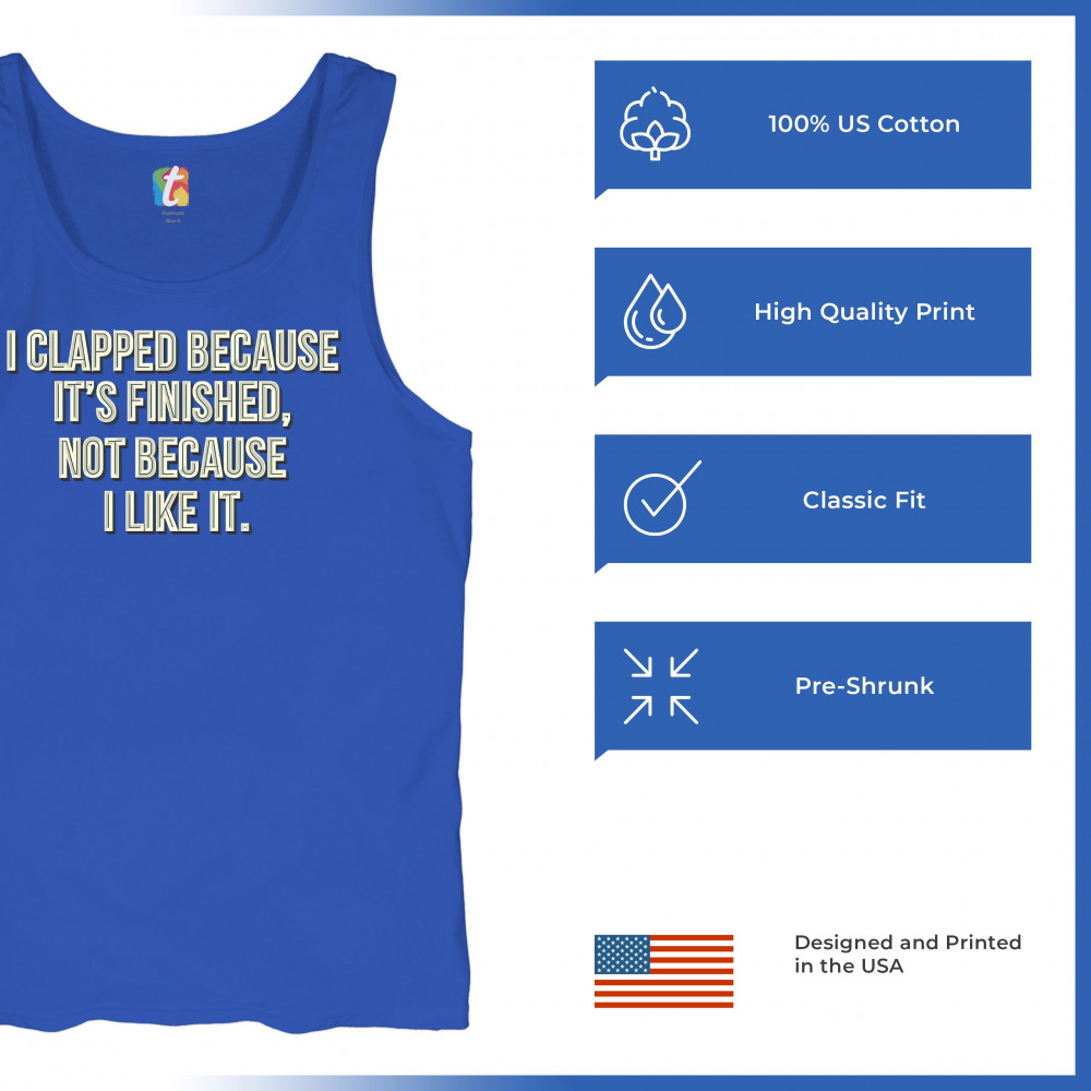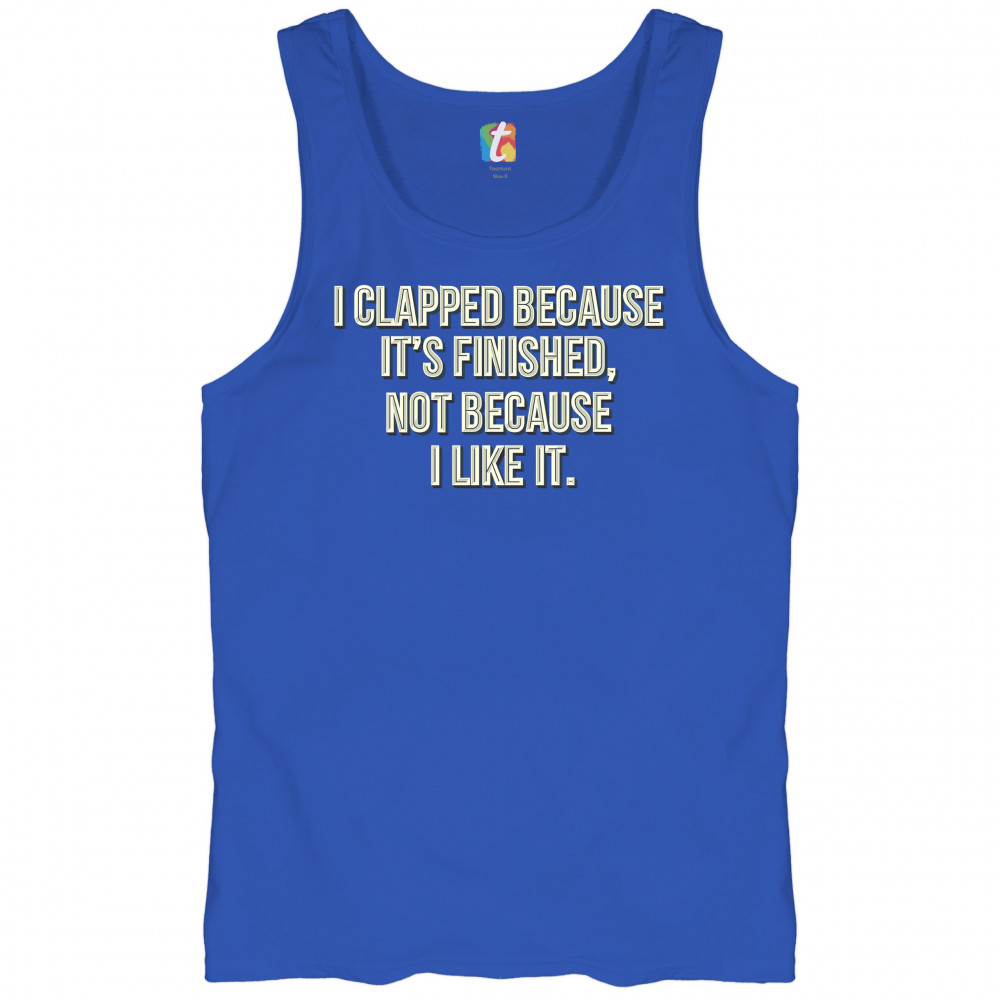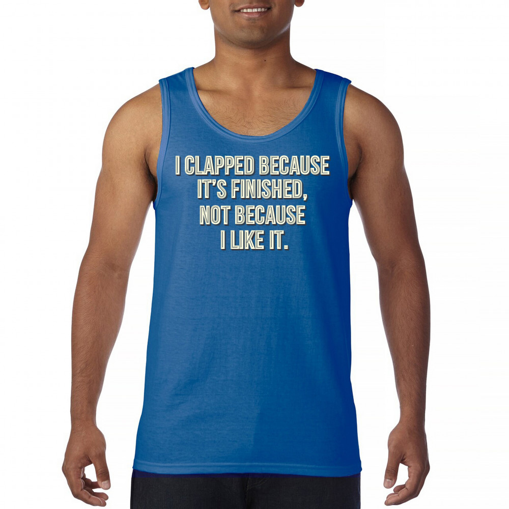 I CLAPPED BECAUSE IT'S FINISHED NOT BECAUSE I LIKE IT tank top funny men's top royal blue