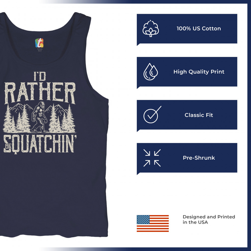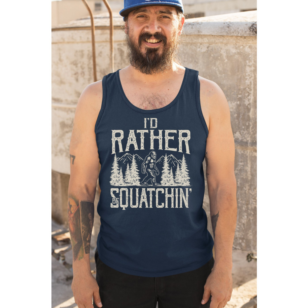 "I’d Rather Be Squatchin’" – A bold design for Bigfoot fans and outdoor adventurers, featuring Sasquatch in a wilderness setting. Perfect for hikers and cryptid enthusiasts!