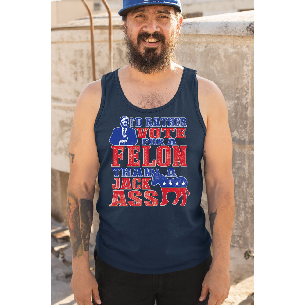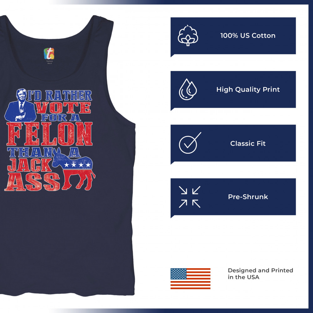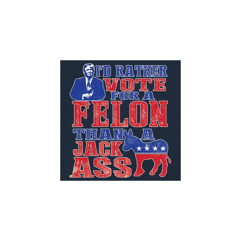 Boldly express your support with the "I'd Rather Vote For A Felon Than A Jackass" design. Perfect for rallies, it showcases loyalty to Trump and JD Vance.