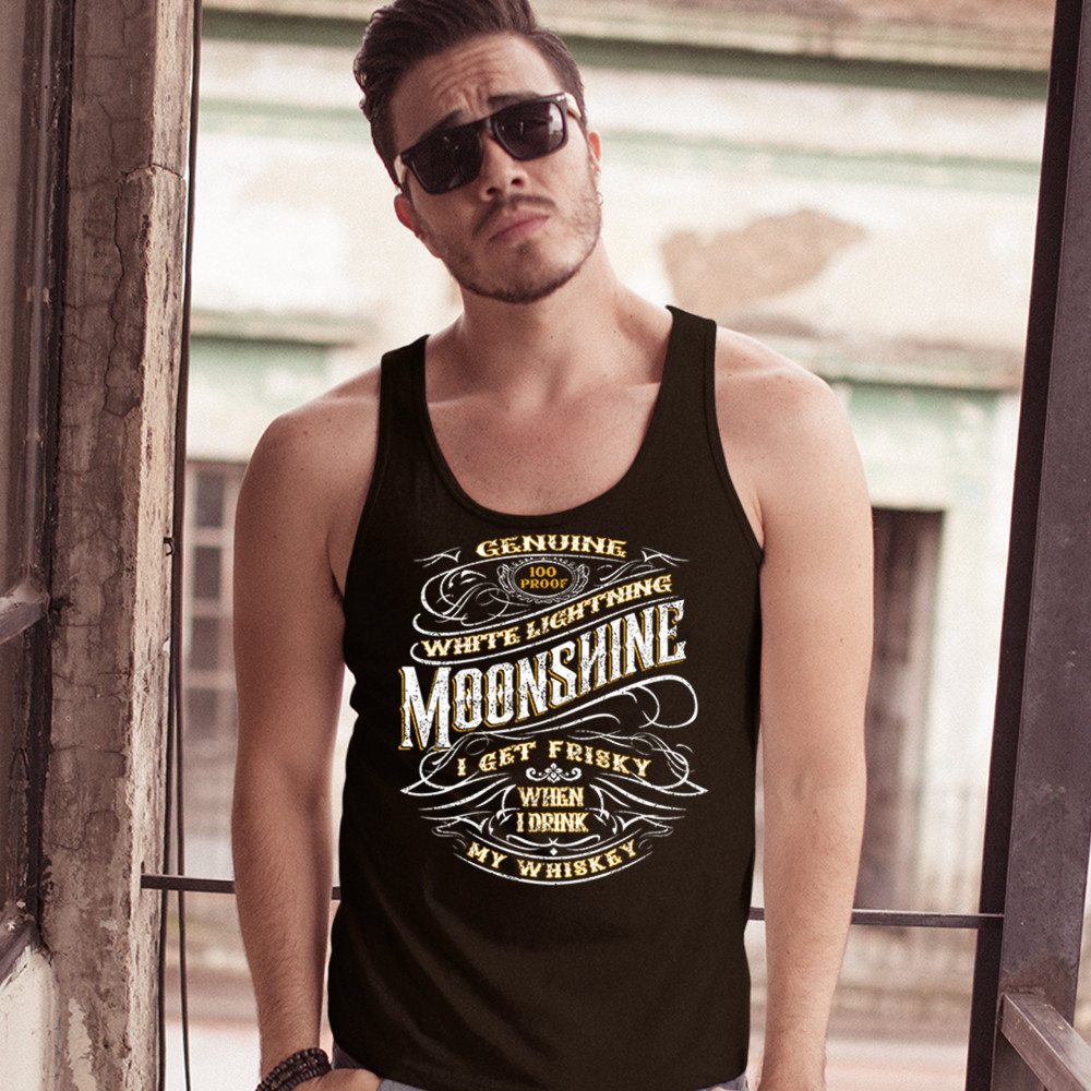 I GET FRISKEY WHEN I DRINK MY WHISKEY tank top genuine moonshine men's top black