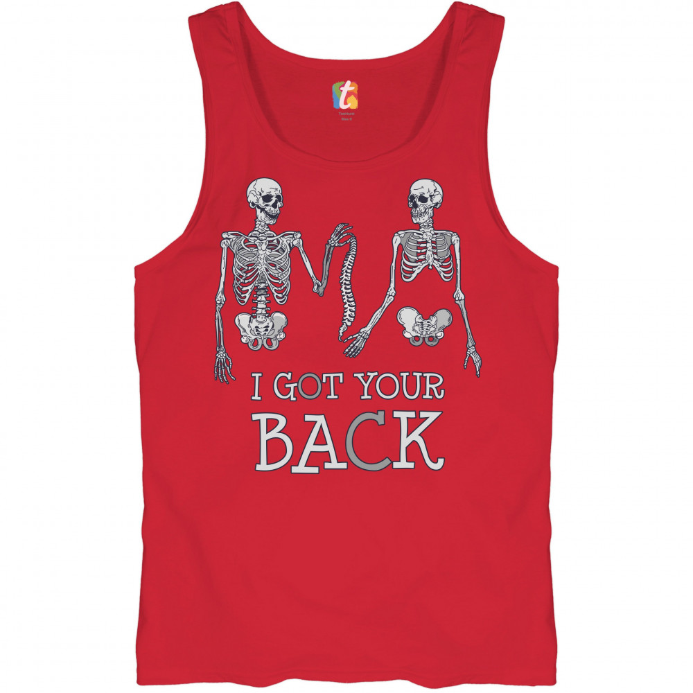 I GOT YOUR BACK tank top happy halloween spooky skeletons men's top red
