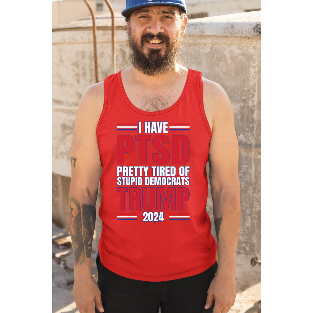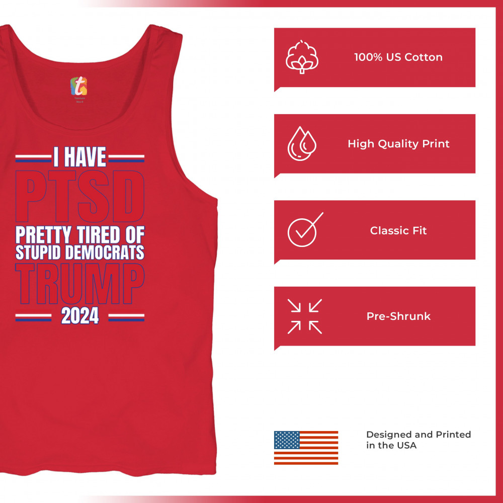 Stand up against the political chaos with "I have PTSD Pretty Tired of Democrats, Trump 2024" tee. As a dedicated supporter of conservative values, join the Trump Train to victory. Trust in God, not government, and reject the traitors to our nation. Let the American flag symbolize our resilience as we fight for President Trump and the future of America.