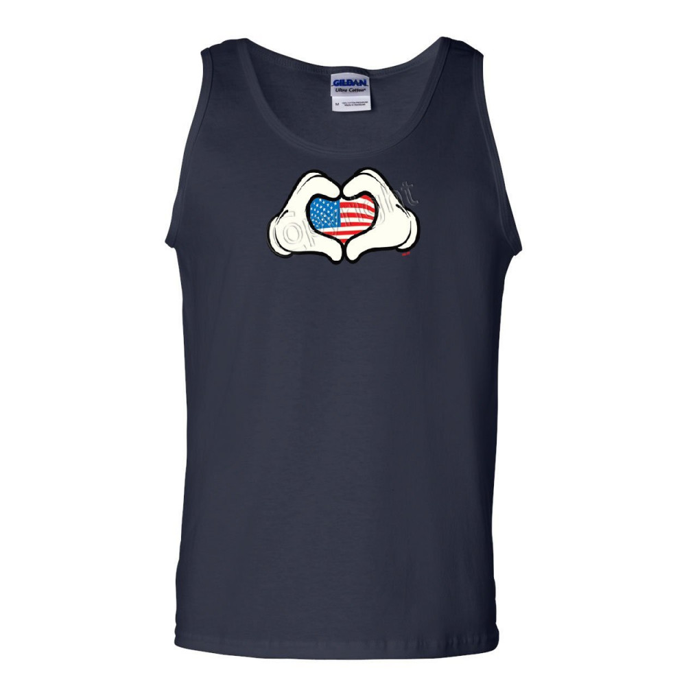 I HEART USA CARTOON HANDS tank top 4th of july cute american flag sleeveless navy blue