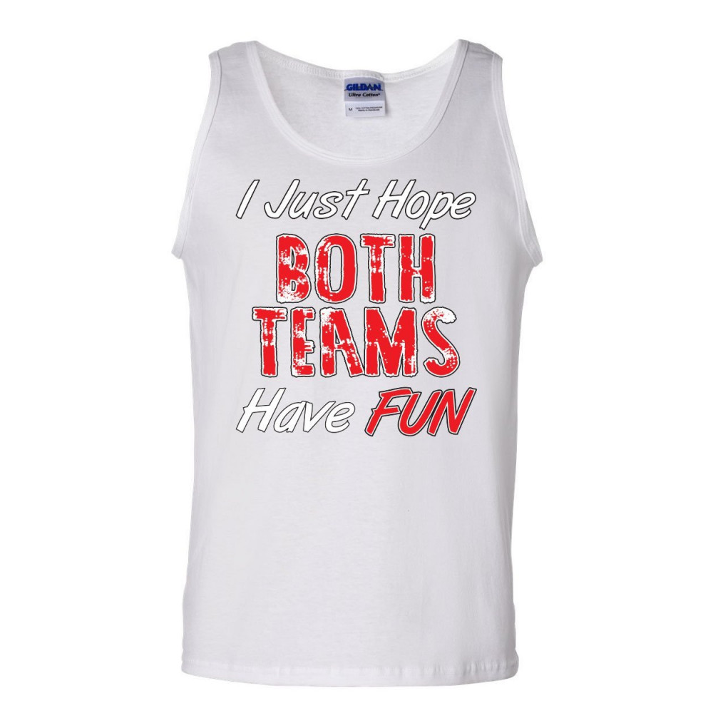 I JUST HOPE BOTH TEAMS HAVE FUN tank top football baseball hockey sleeveless white