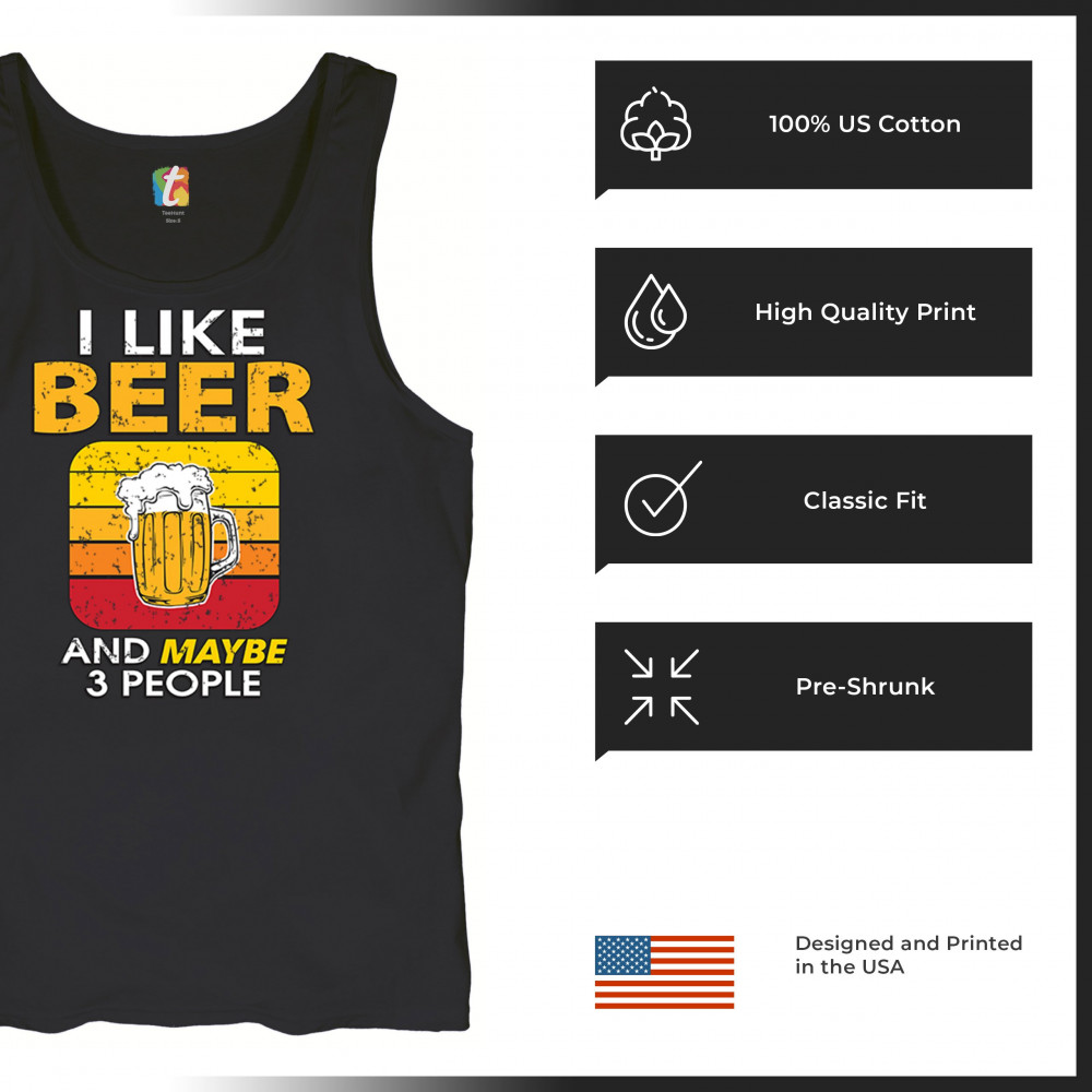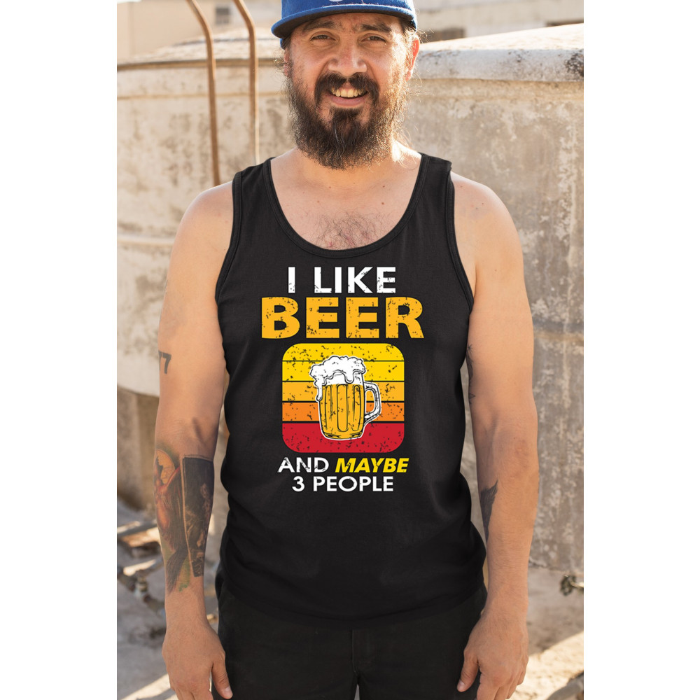 I LIKE BEER & 3 PEOPLE tank top sarcastic humor craft brewery lager men's top black
