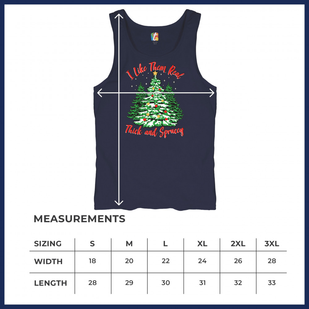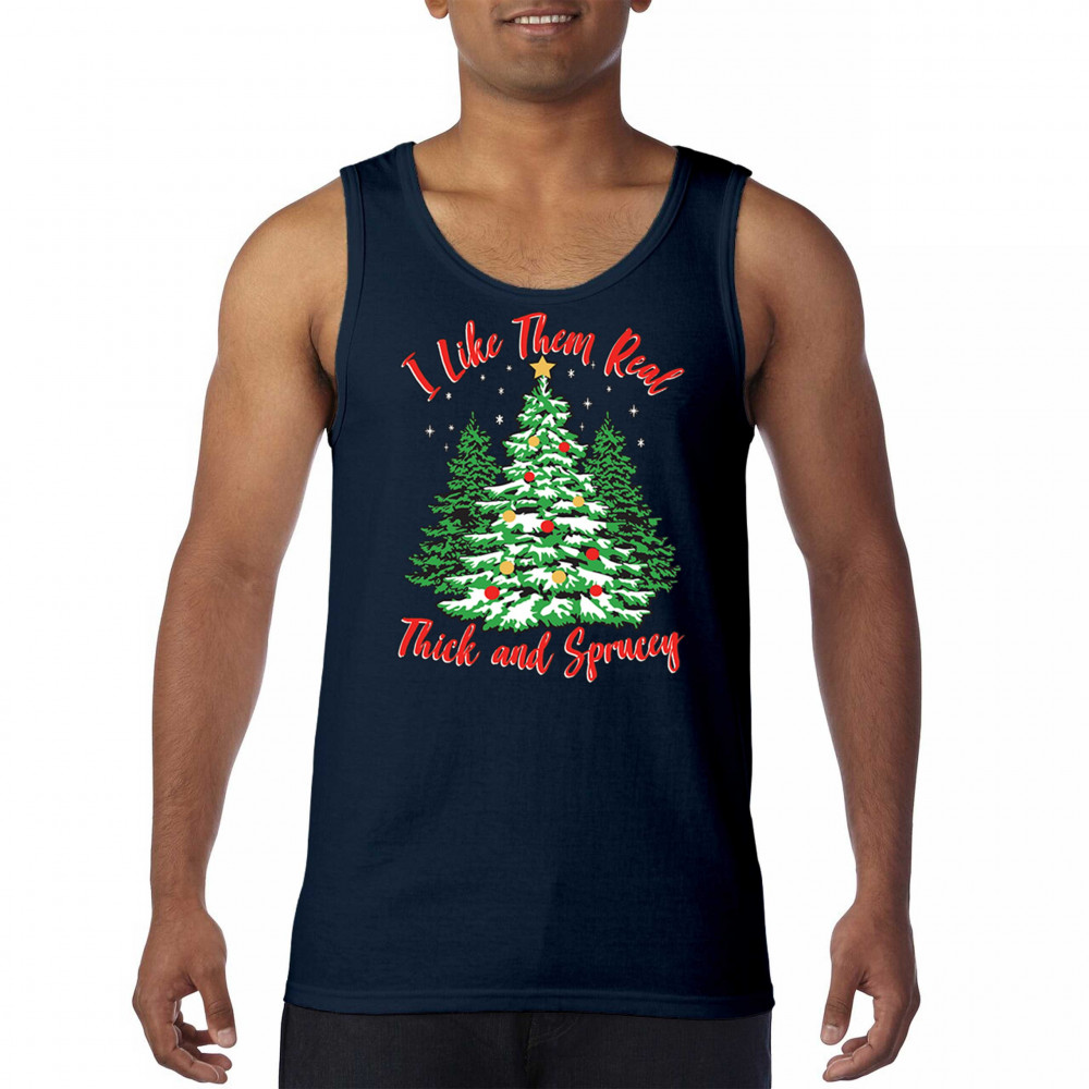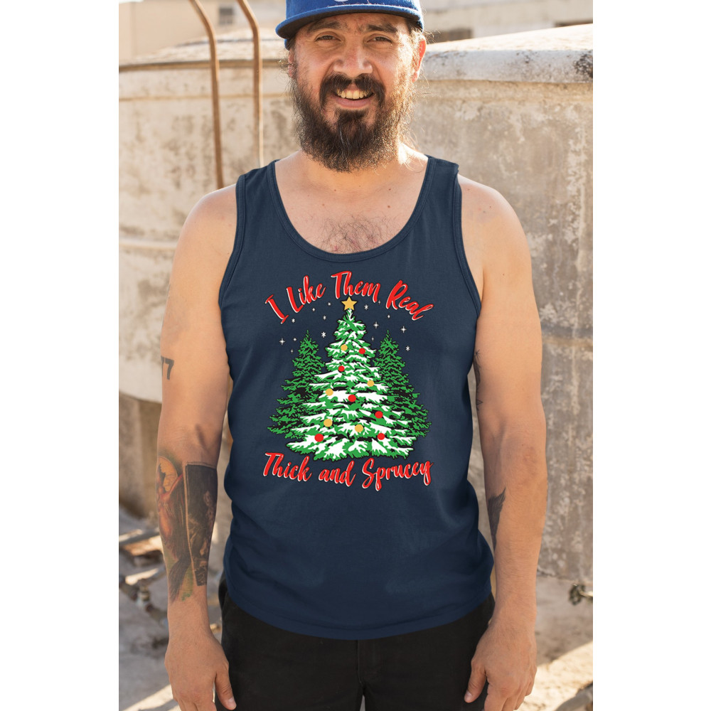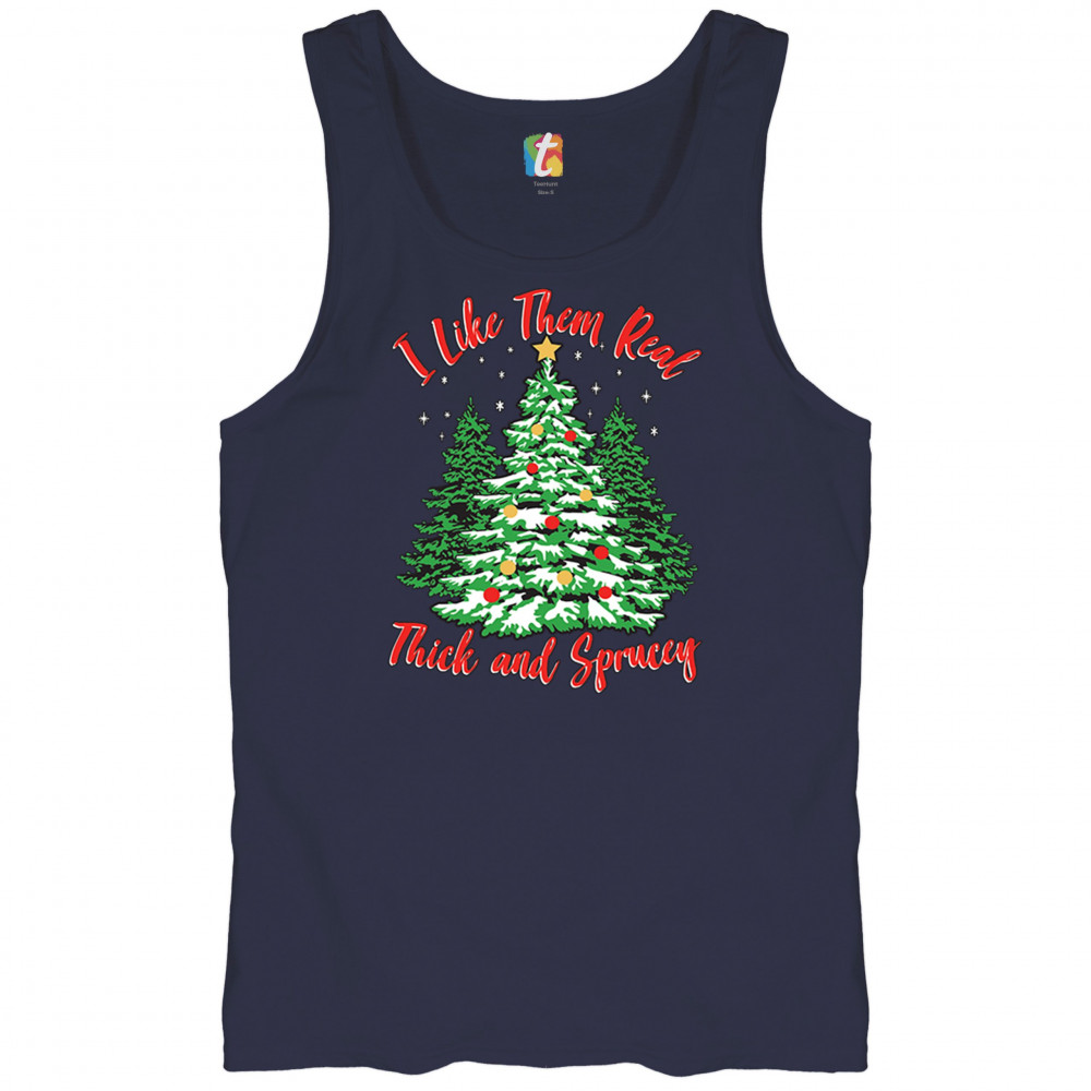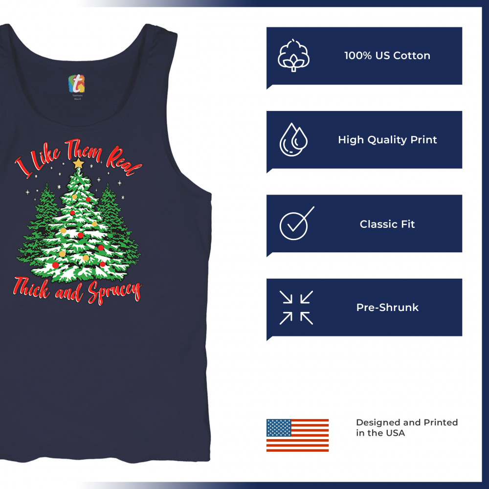 Enjoy the holiday season with our "I Like Them Real, Thick, and Sprucey" Christmas tree design, perfect for festive gatherings and holiday gifting!