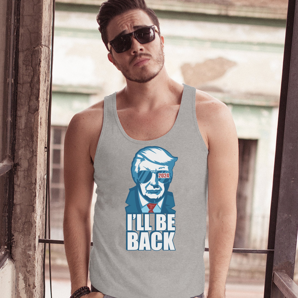I'LL BE BACK DONALD TRUMP 2024 tank top take america back two terms men's top gray