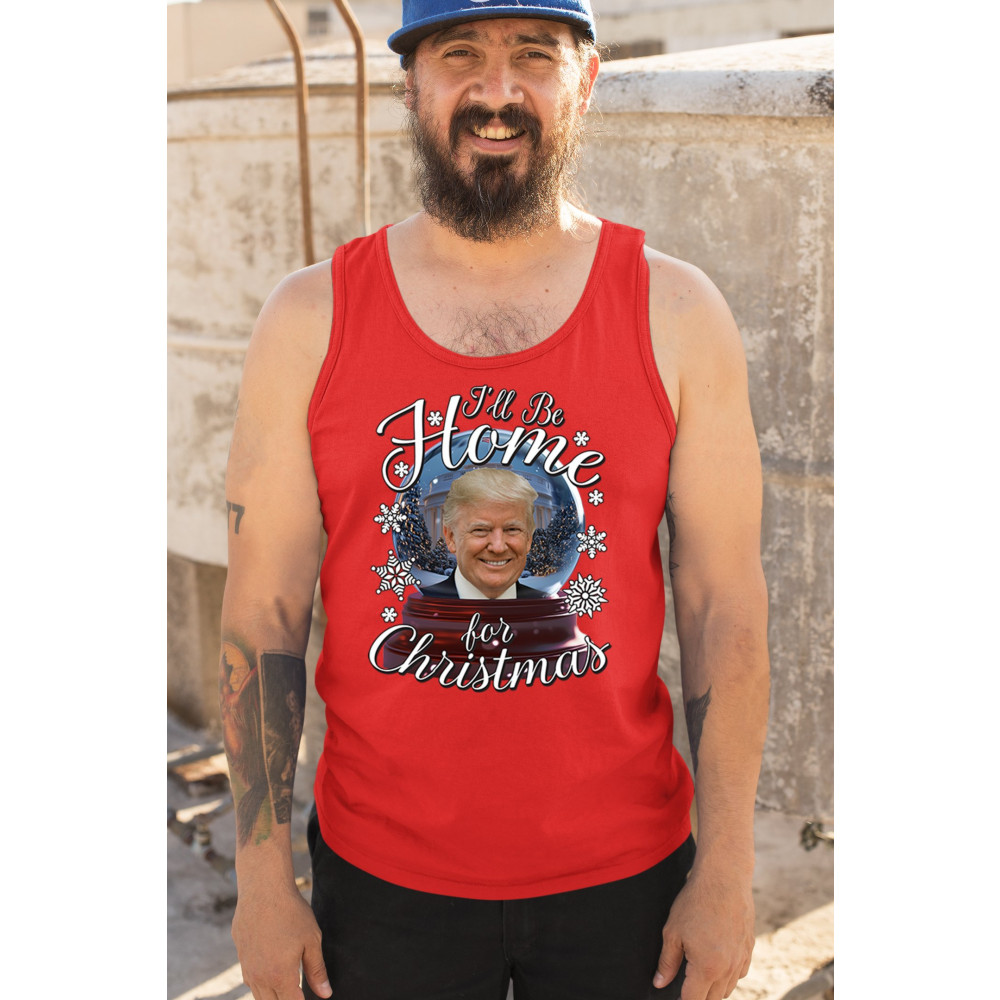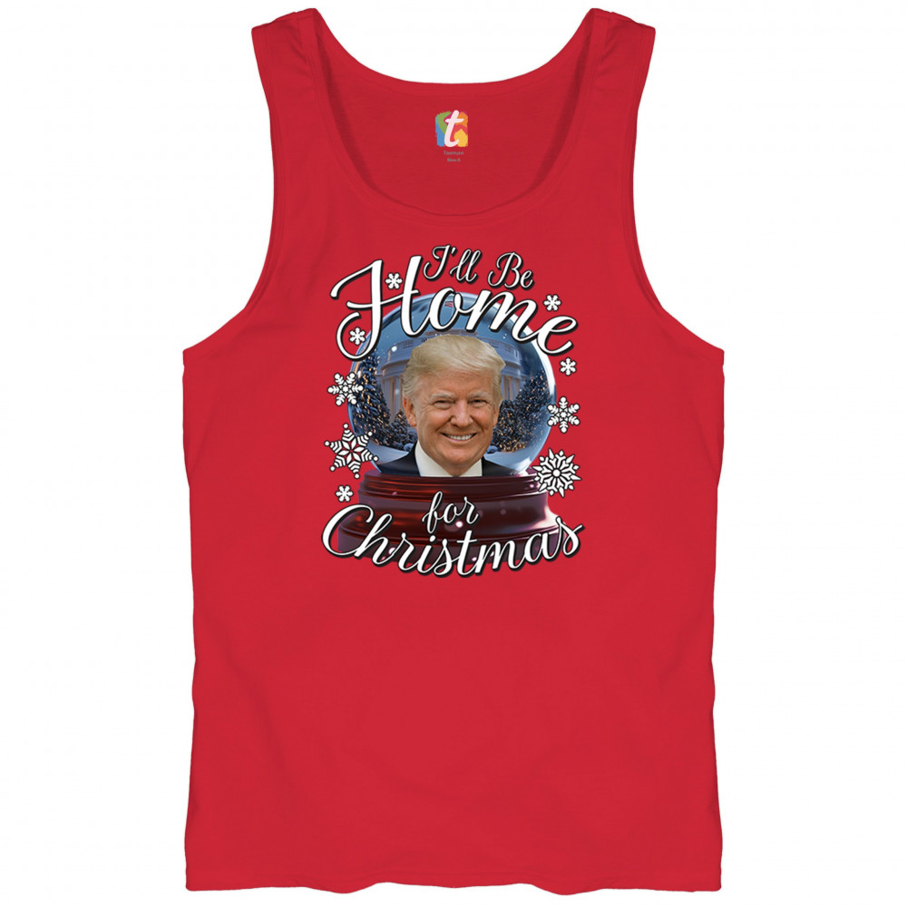 Get ready for the ultimate blend of holiday cheer and American pride with this "I'll Be Home for Christmas" design featuring Donald J. Trump in a festive snow globe. Perfect for gifts, holiday parties, or cozy mornings, this standout piece celebrates the season with style. Whether paired with matching pajamas or a cozy sweatshirt, it's a perfect way to add patriotic charm to your Feliz Navidad celebrations or office gatherings.