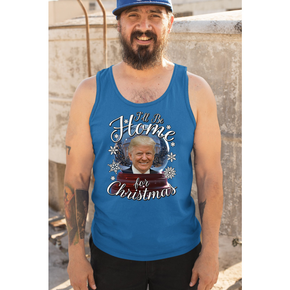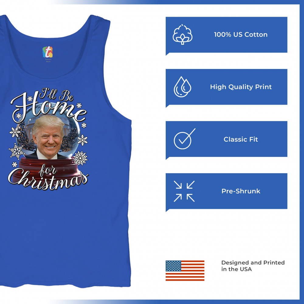 Get ready for the ultimate blend of holiday cheer and American pride with this "I'll Be Home for Christmas" design featuring Donald J. Trump in a festive snow globe. Perfect for gifts, holiday parties, or cozy mornings, this standout piece celebrates the season with style. Whether paired with matching pajamas or a cozy sweatshirt, it's a perfect way to add patriotic charm to your Feliz Navidad celebrations or office gatherings.