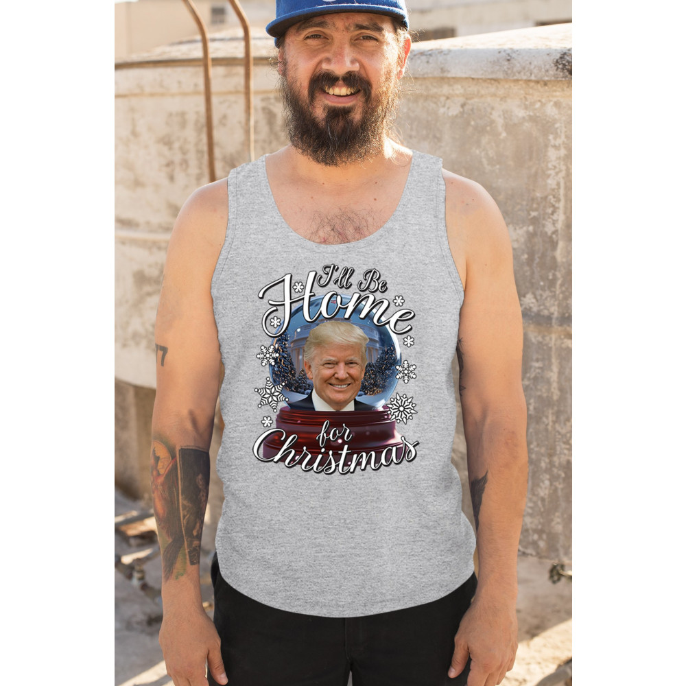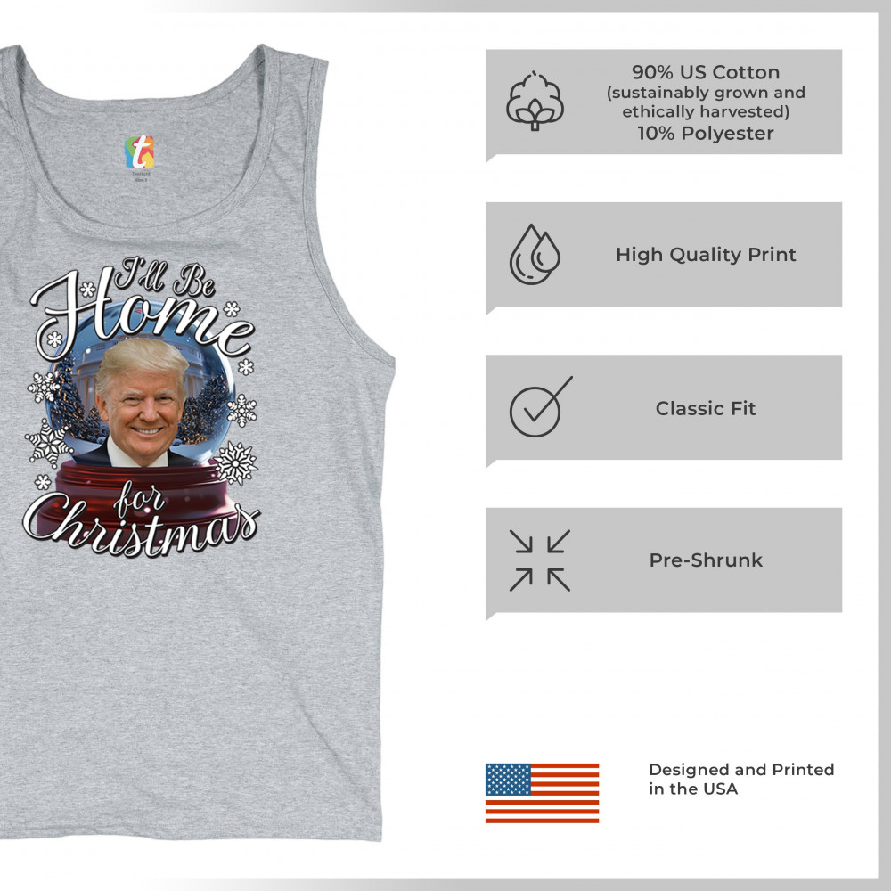 Get ready for the ultimate blend of holiday cheer and American pride with this "I'll Be Home for Christmas" design featuring Donald J. Trump in a festive snow globe. Perfect for gifts, holiday parties, or cozy mornings, this standout piece celebrates the season with style. Whether paired with matching pajamas or a cozy sweatshirt, it's a perfect way to add patriotic charm to your Feliz Navidad celebrations or office gatherings.