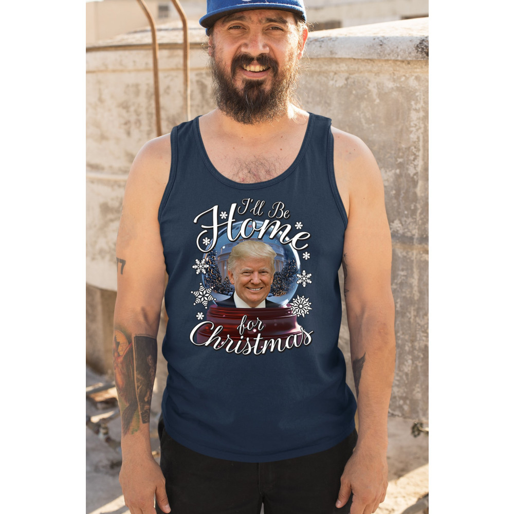 Get ready for the ultimate blend of holiday cheer and American pride with this "I'll Be Home for Christmas" design featuring Donald J. Trump in a festive snow globe. Perfect for gifts, holiday parties, or cozy mornings, this standout piece celebrates the season with style. Whether paired with matching pajamas or a cozy sweatshirt, it's a perfect way to add patriotic charm to your Feliz Navidad celebrations or office gatherings.